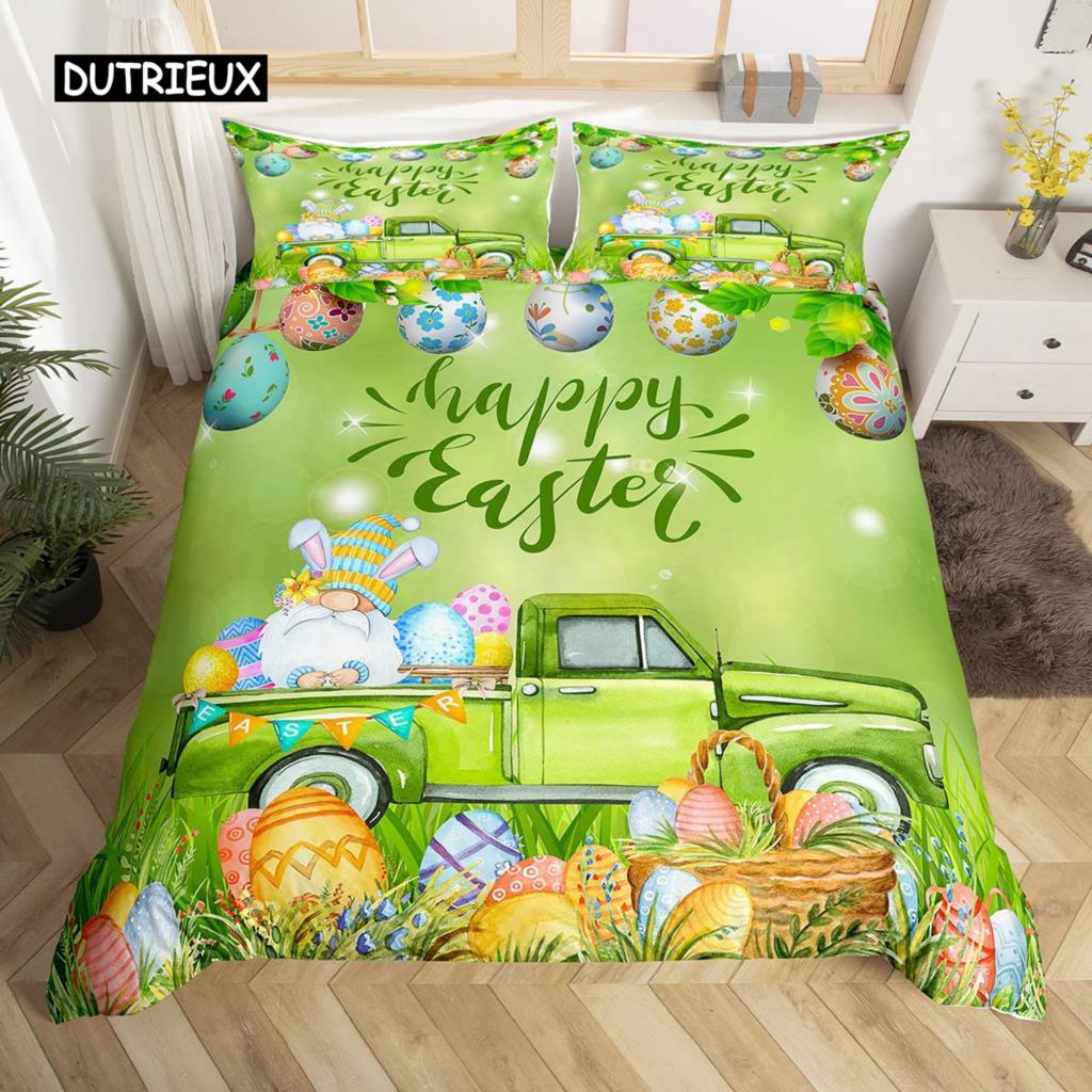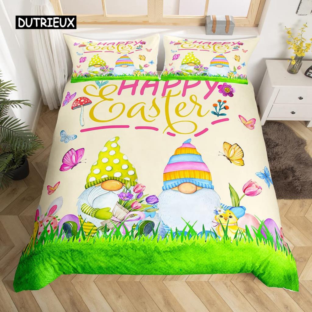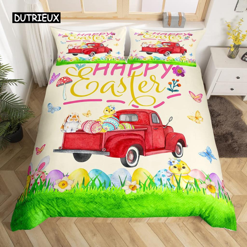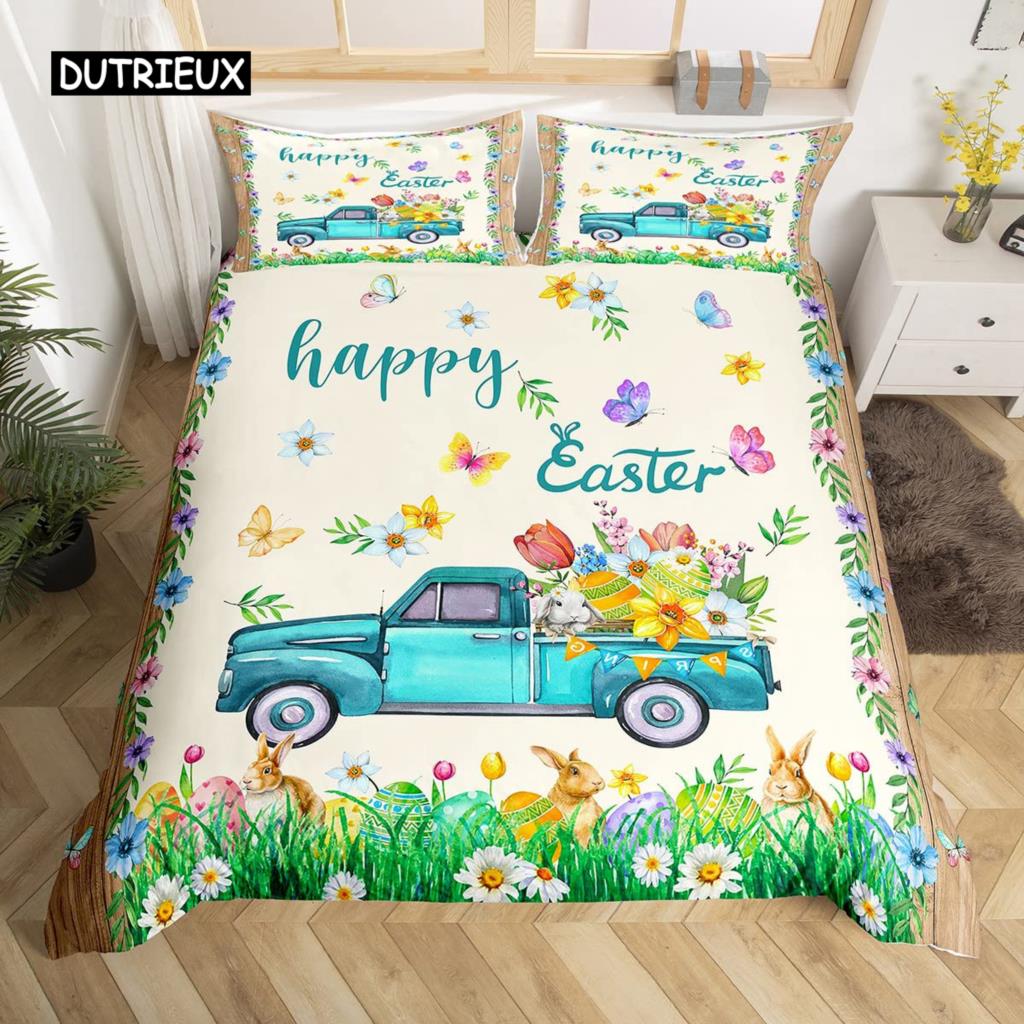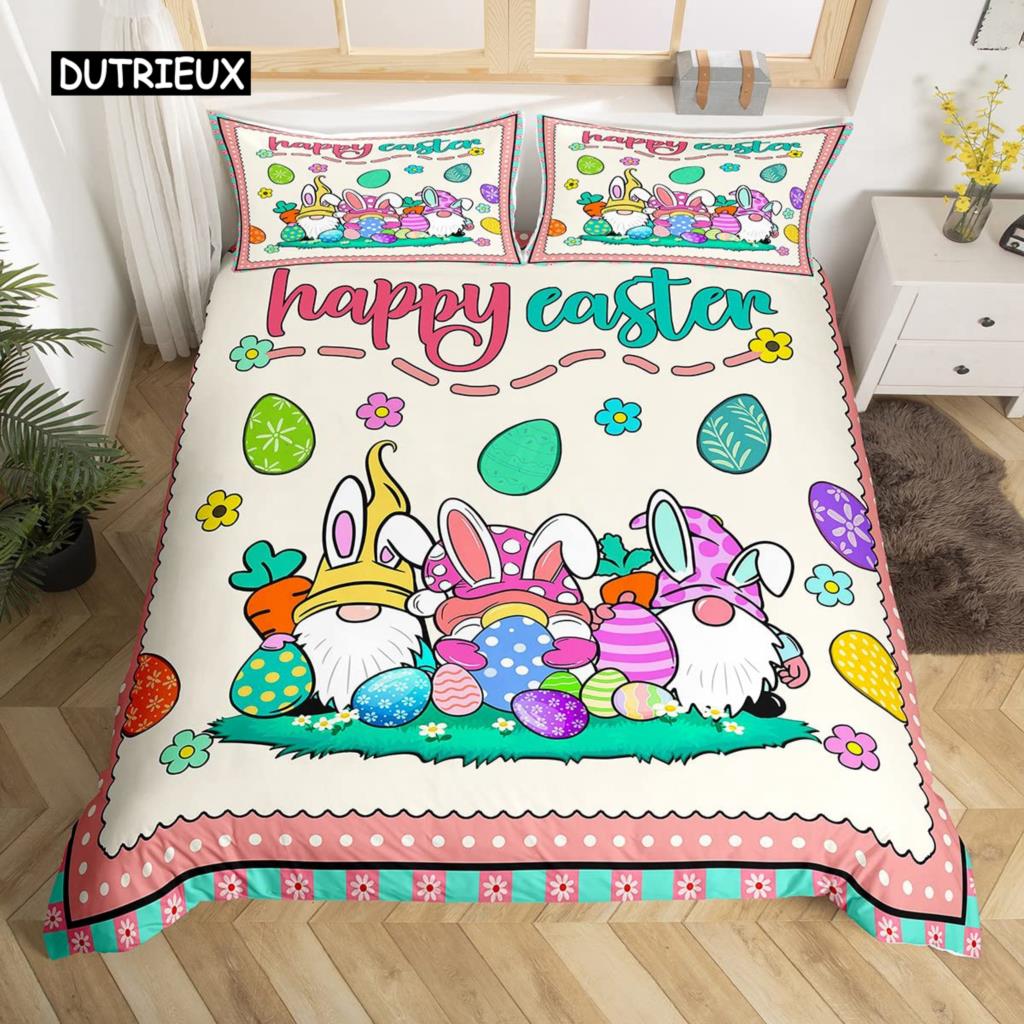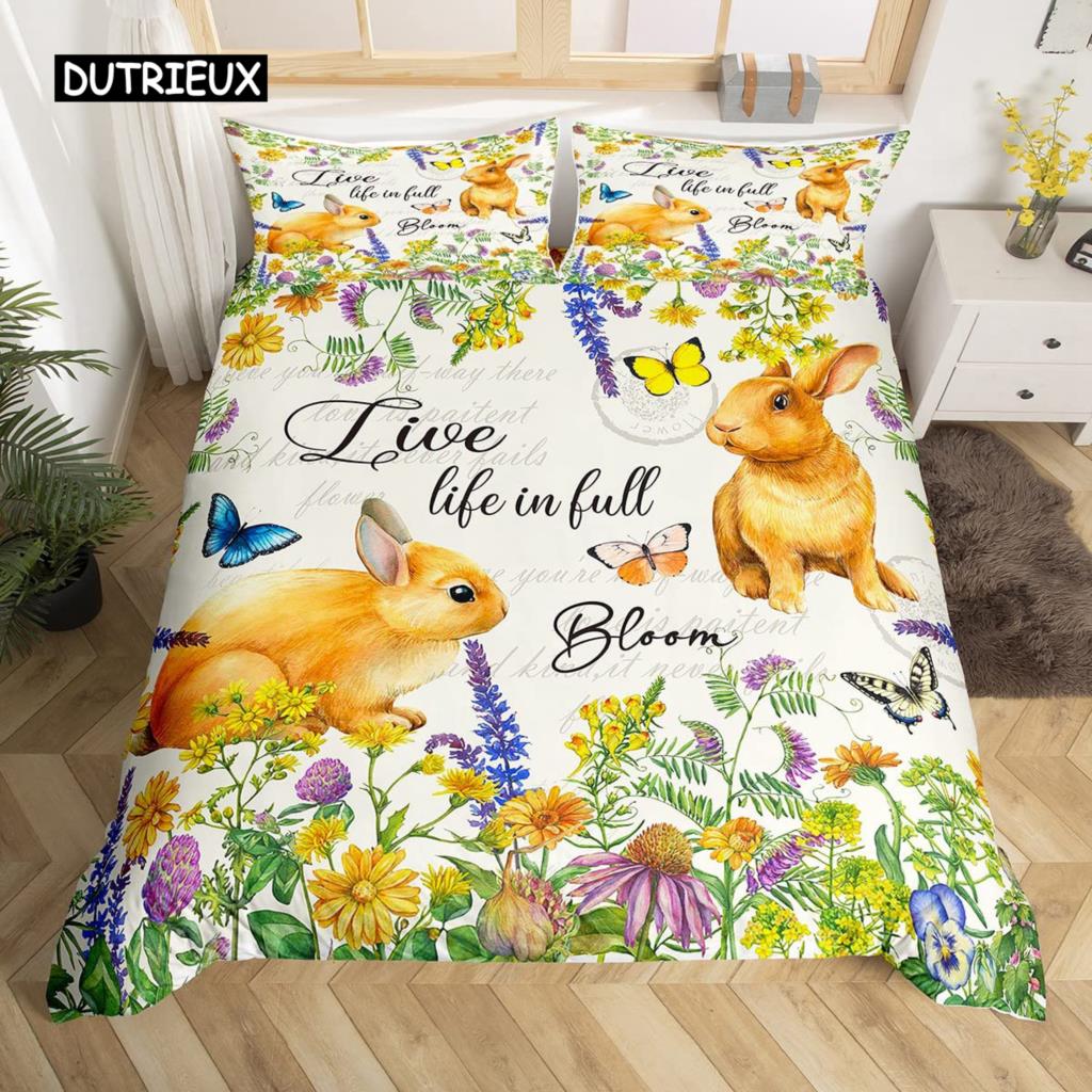 Пасхальный кролик хвост одеяло покрывало пастельно-розовый тюльпан цветы пододеяльник два пасхальных яйца кавайные животные комплект постельного белья пасхальный декор