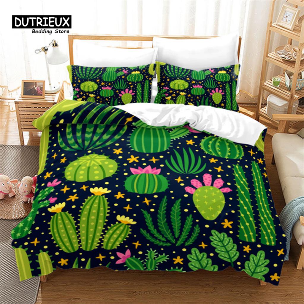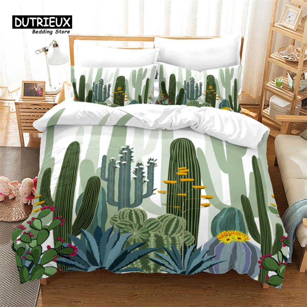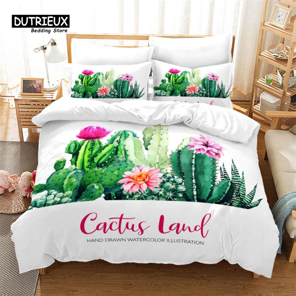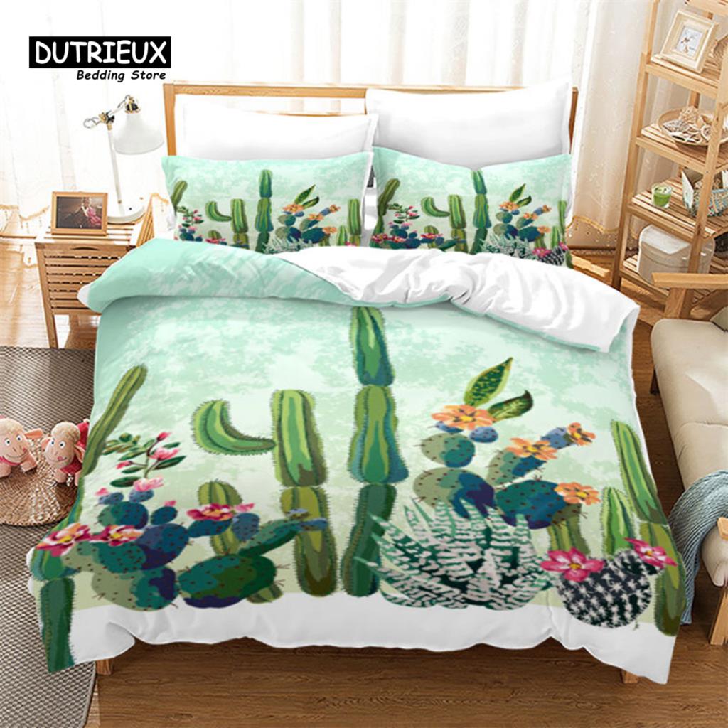 Шикарный кактусовый постельный комплект размера «queen» для детей, подростков, для декора, мультяшный, с зелеными растениями, суккулентами, пододеяльник, искусство природы, цветочный чехол для одеяла