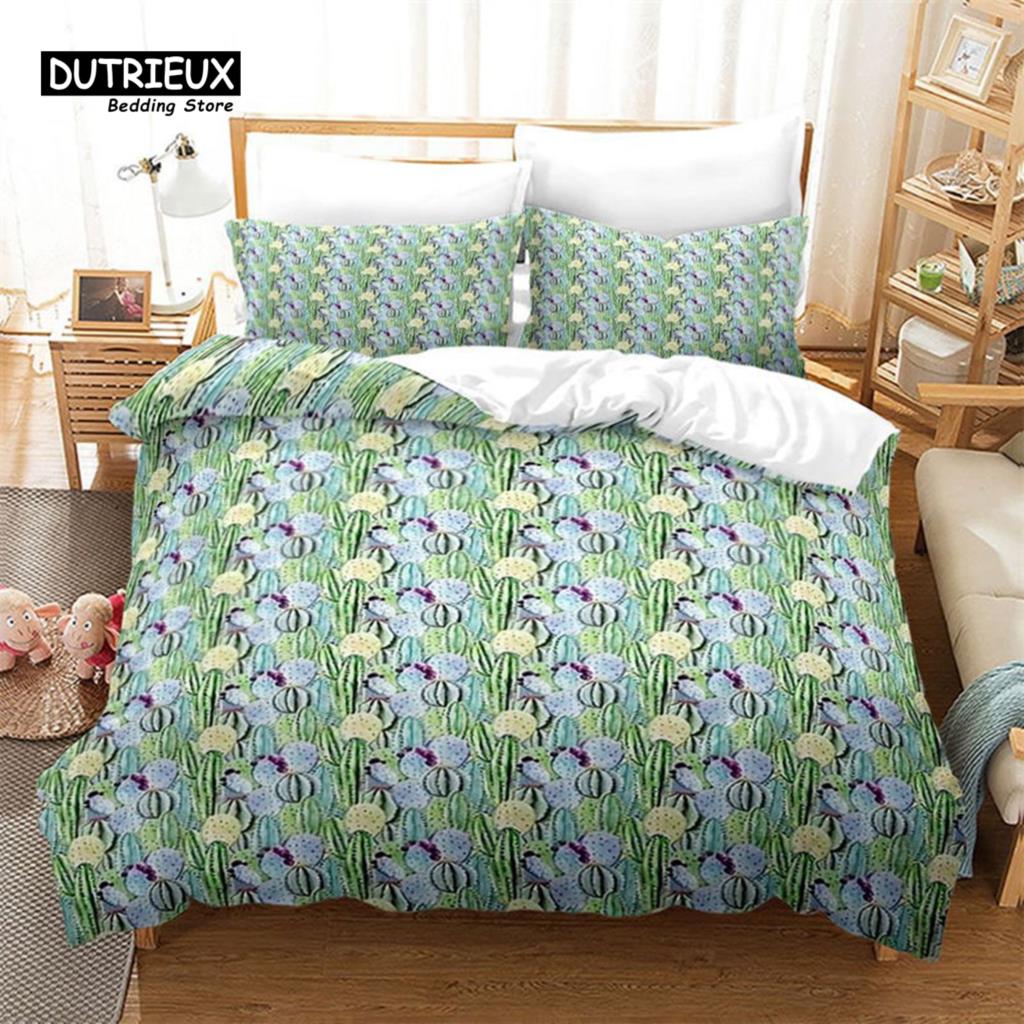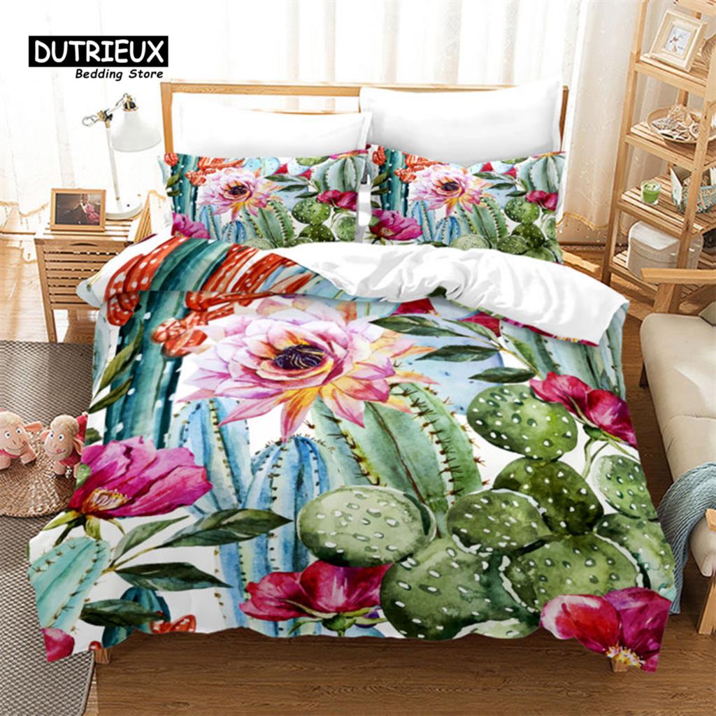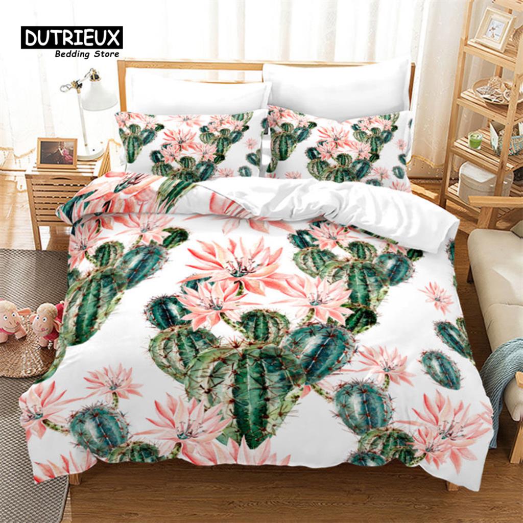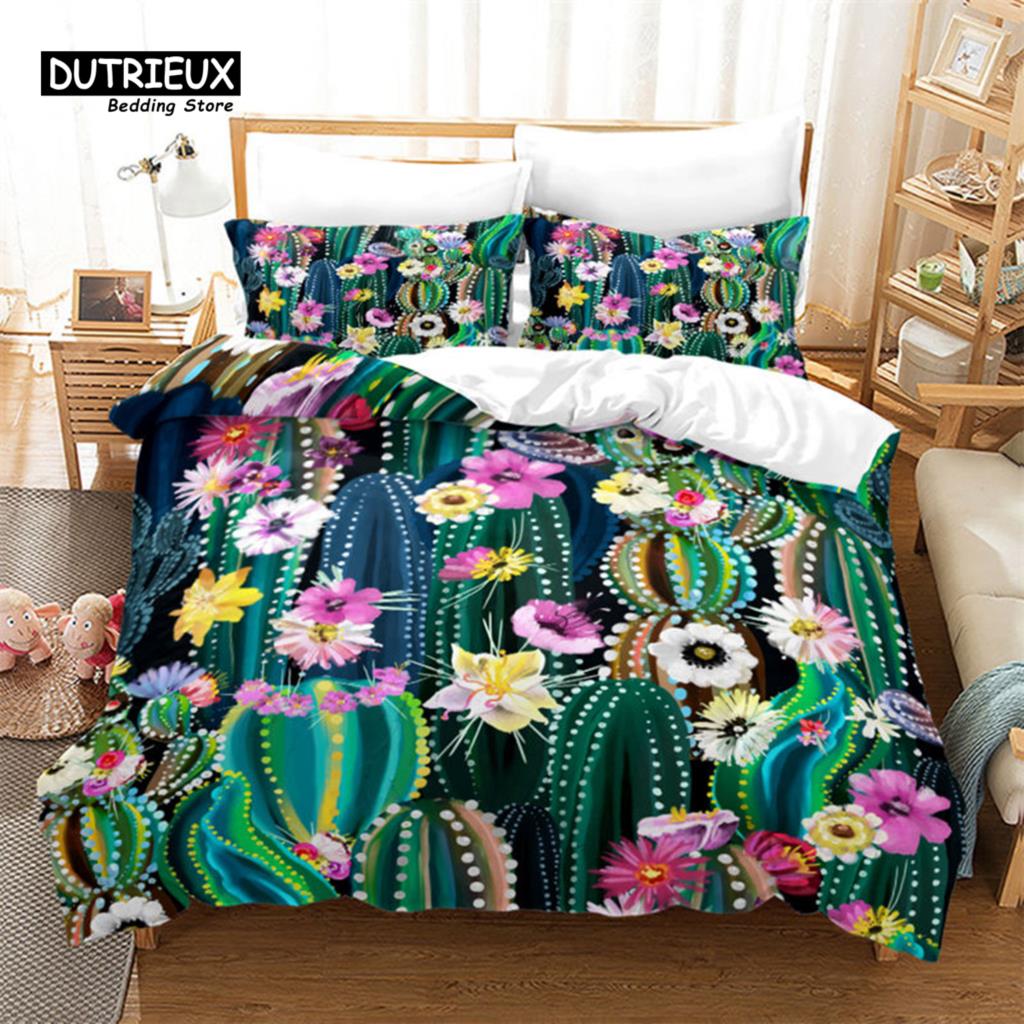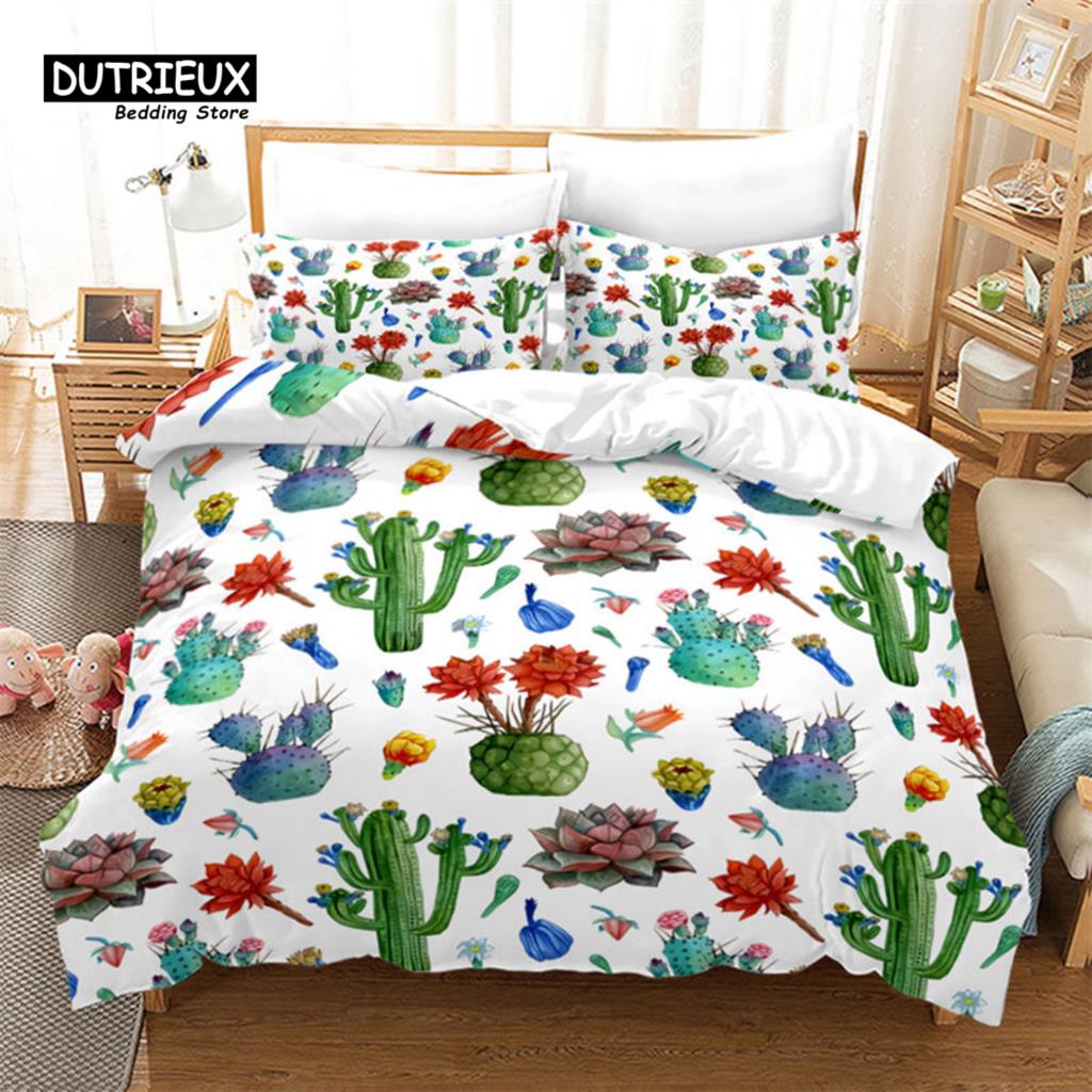Шикарный кактусовый постельный комплект размера «queen» для детей, подростков, для декора, мультяшный, с зелеными растениями, суккулентами, пододеяльник, искусство природы, цветочный чехол для одеяла