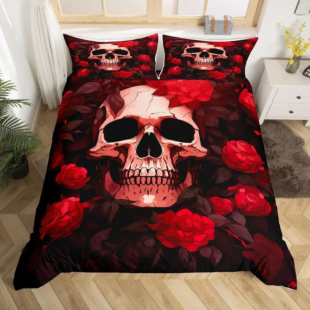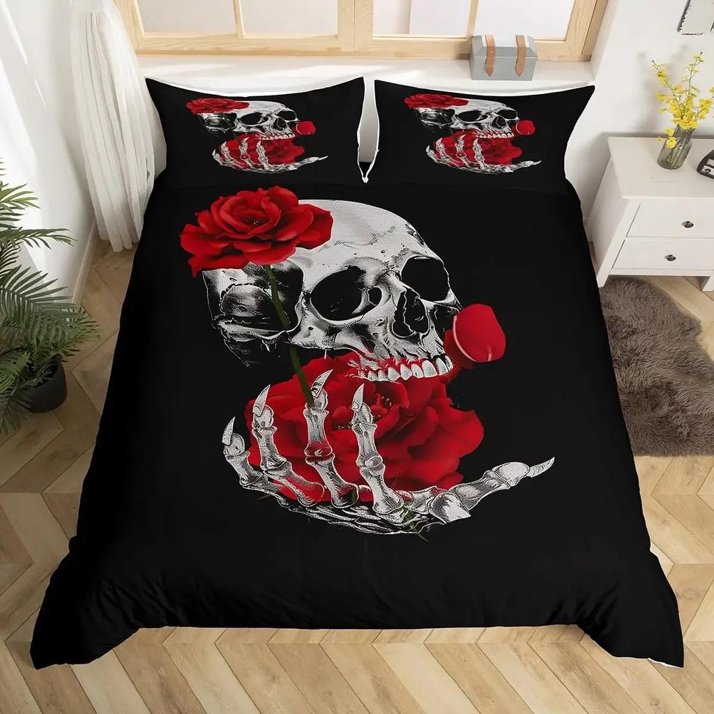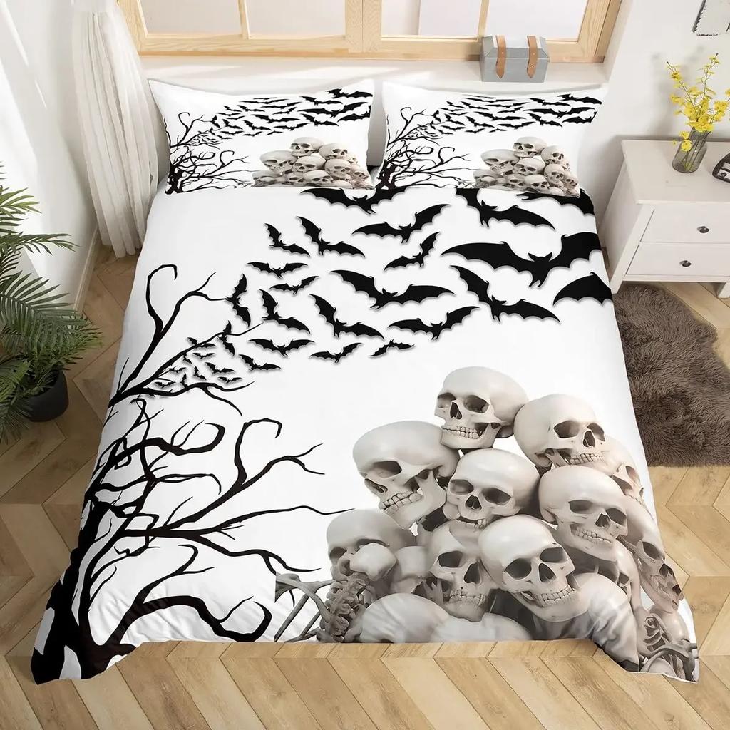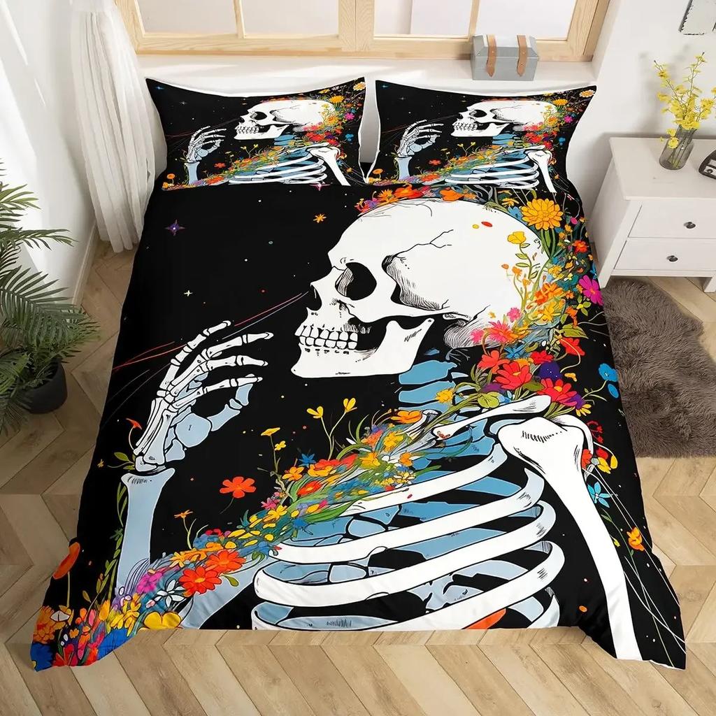 Пододеяльник с цветочным принтом без наполнителя, черный комплект постельного белья со скелетом, антикварный викторианский барокко, пододеяльник с черепом, готический винтаж
