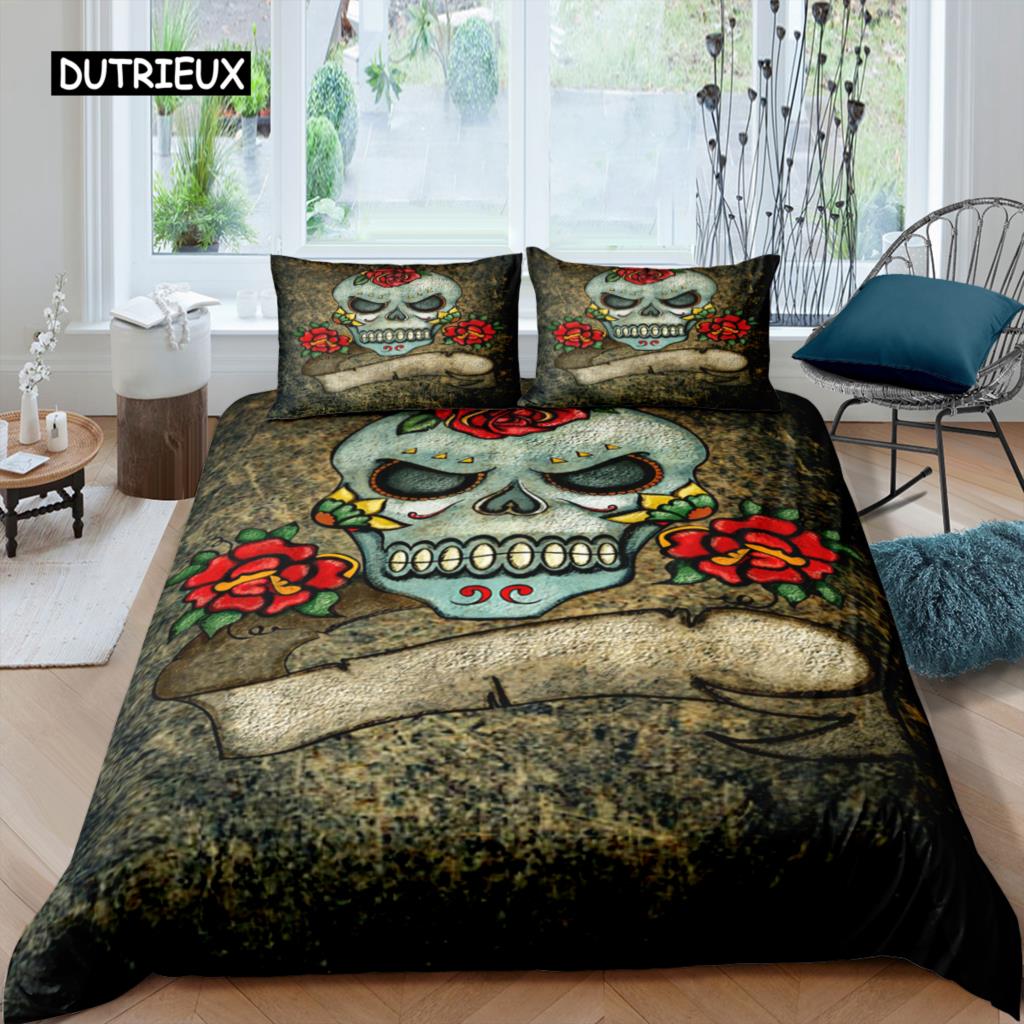 Комплекты постельного белья Sugar Skull King Beauty Kiss Skull, пододеяльник, комплект постельного белья Bohemian Print, черное постельное белье Queen Size