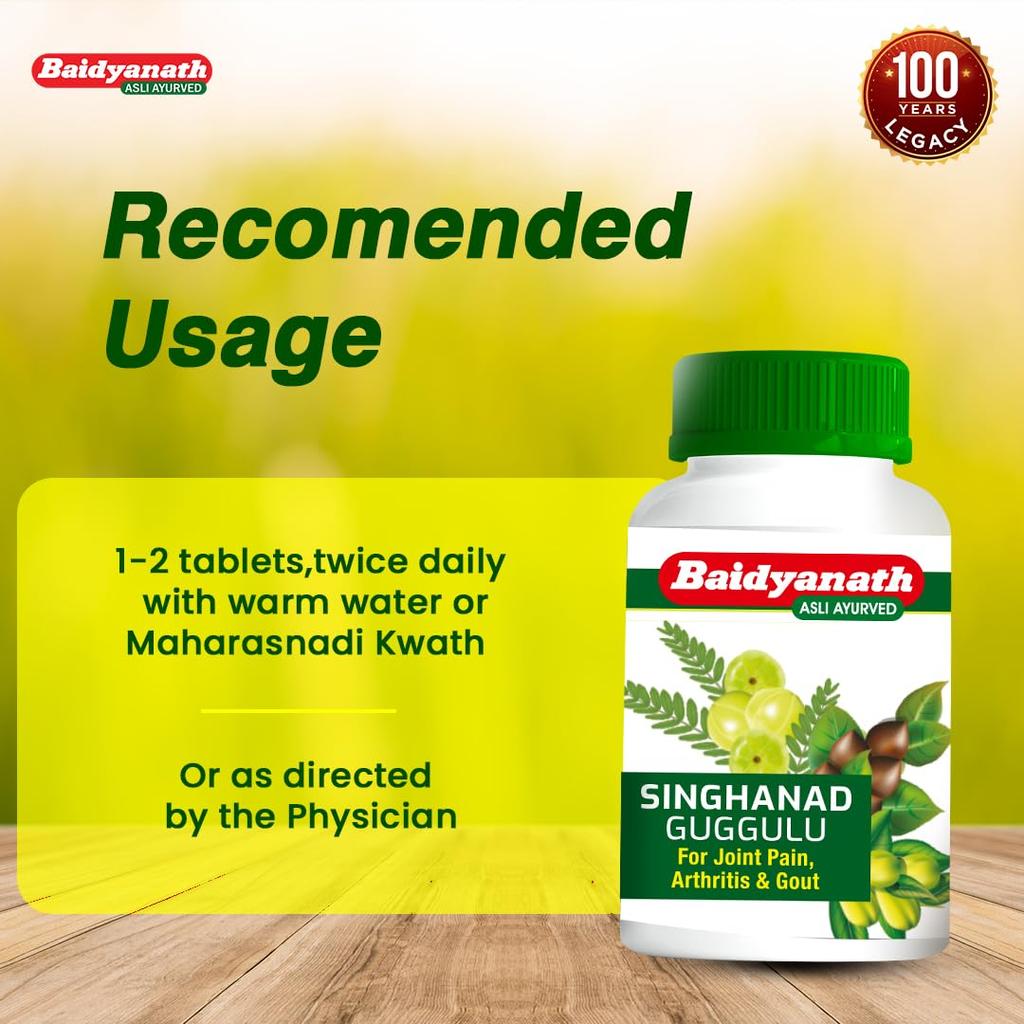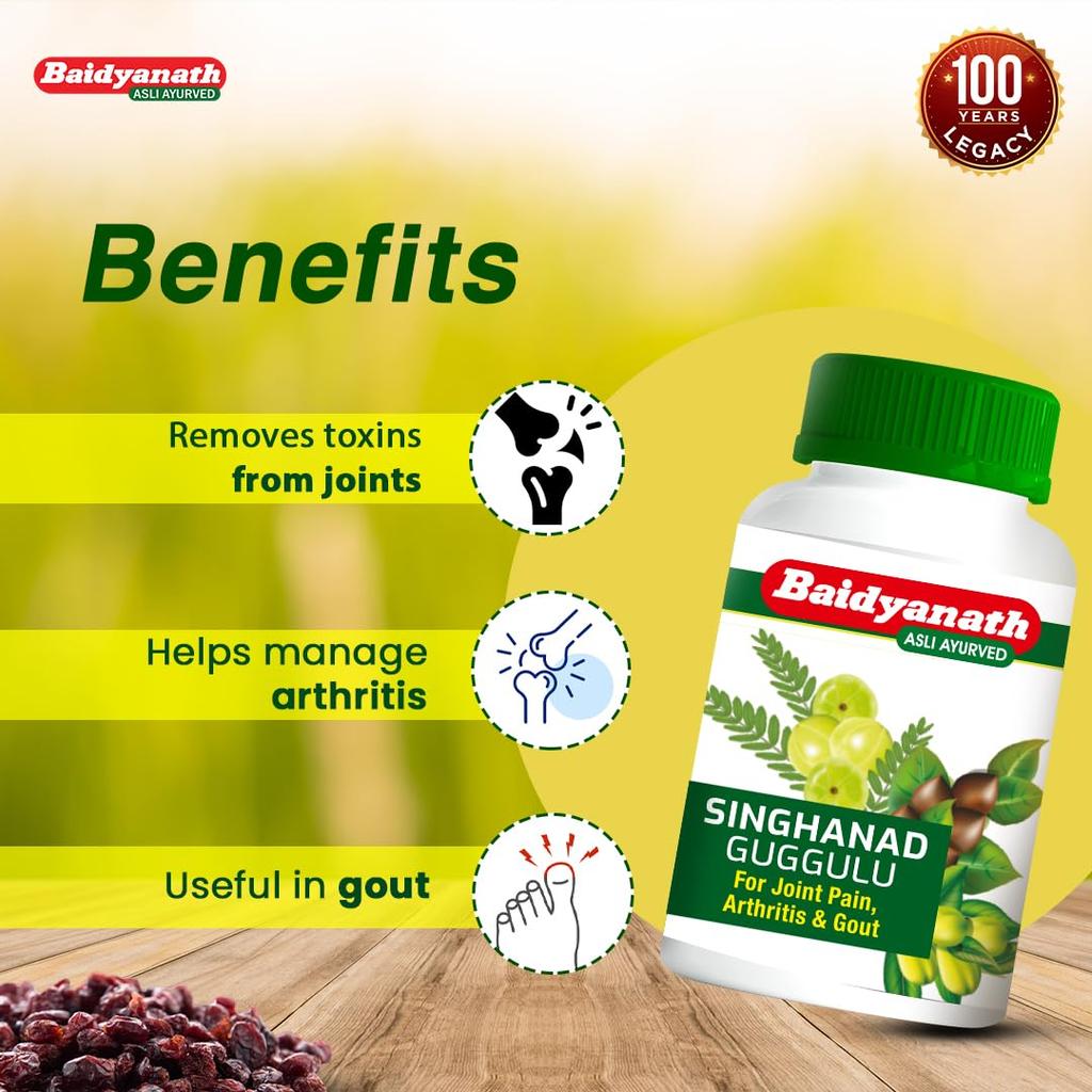 Откройте для себя Baidyanath Singhanad Guggulu, классическую аюрведическую таблетку, разработанную для здоровья суставов. Он улучшает подвижность, поддерживает гибкость и органично вписывается в ваш активный образ жизни. Наслаждайтесь ежедневным комфортом и плавностью движений естественным образом.