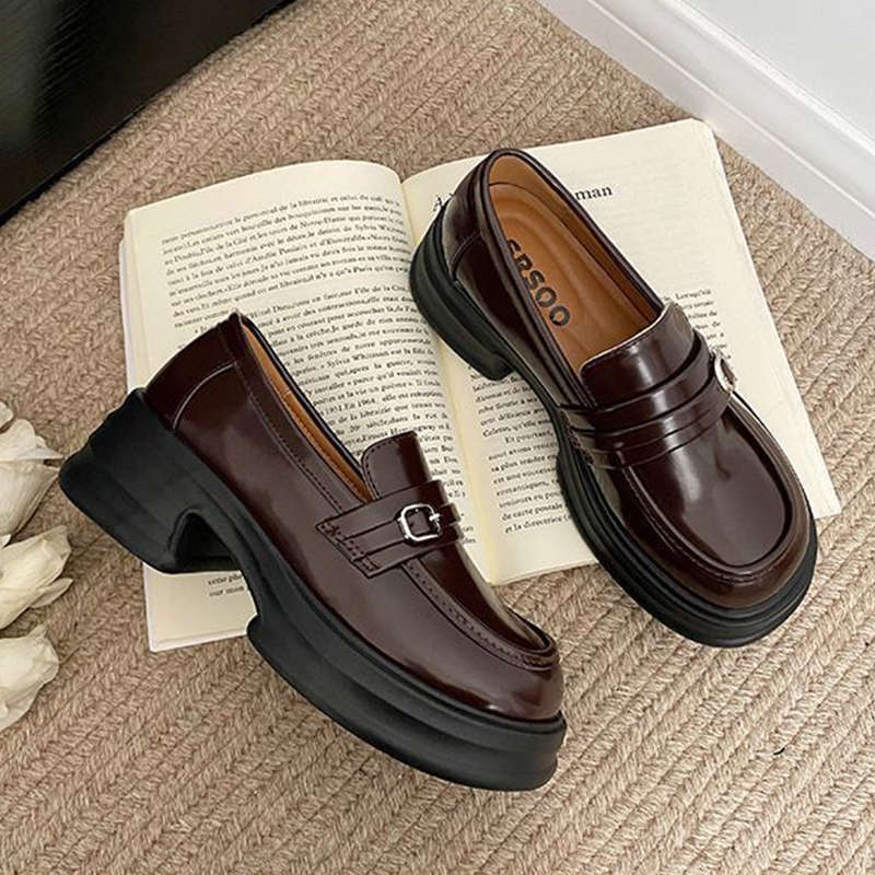 Коричневые туфли на высокой платформе в ретро-британском стиле, женские, весна-осень 2025, французские мокасины с одной педалью