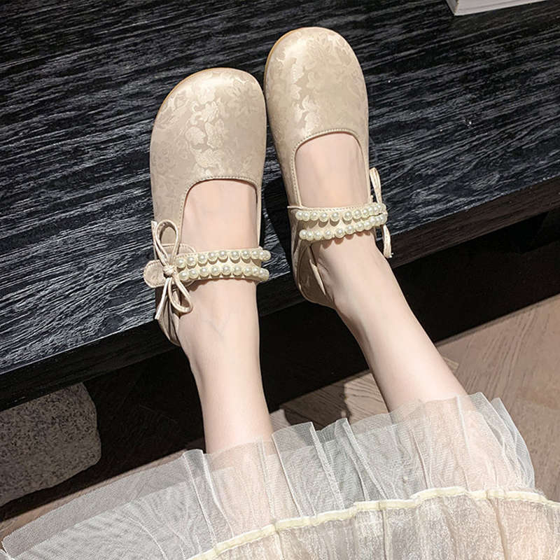 Туфли Мэри Джейн в стиле «маленький аромат» женские 2025 весна и осень новые французские ретро с жемчужным словом балетки