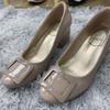 Версия из мягкой кожи~ Однотонные туфли телесного розового цвета женские 2025 новая осень классическая квадратная пряжка лакированная кожа универсальный толстый каблук для работы женские туфли