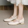 Темпераментные туфли на высоком каблуке, квадратный носок, толстый каблук, туфли-лодочки с открытым подъемом, весна 2025, новинка, французские ретро туфли Мэри Джейн для женщин