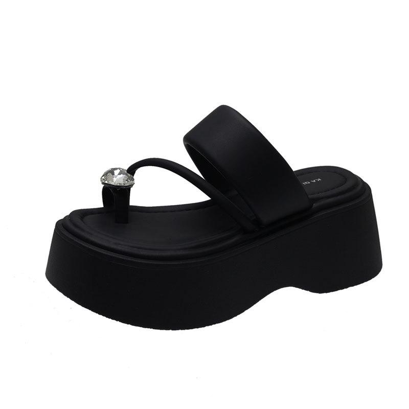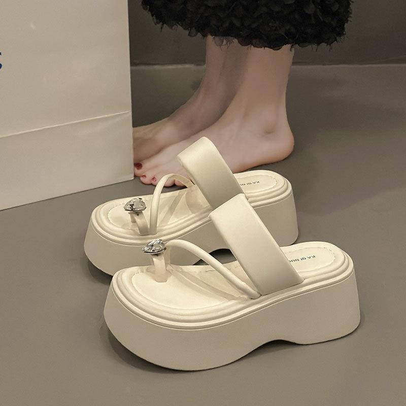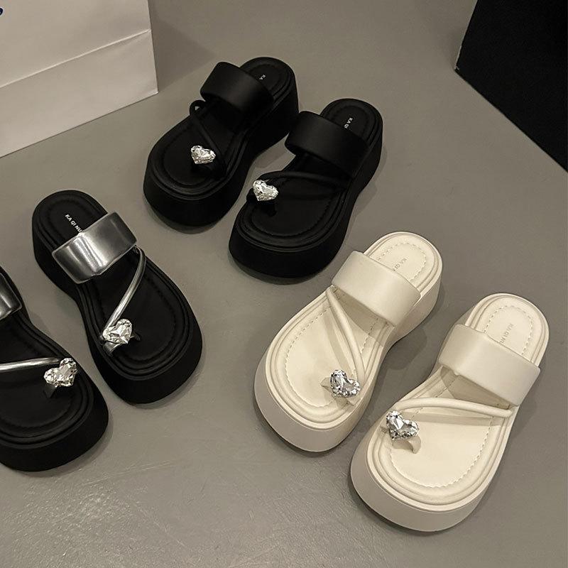 Премиальные серебристые шлепанцы с носком из страз, женская летняя обувь 2025, новая маленькая платформа с увеличением высоты, пляжная обувь