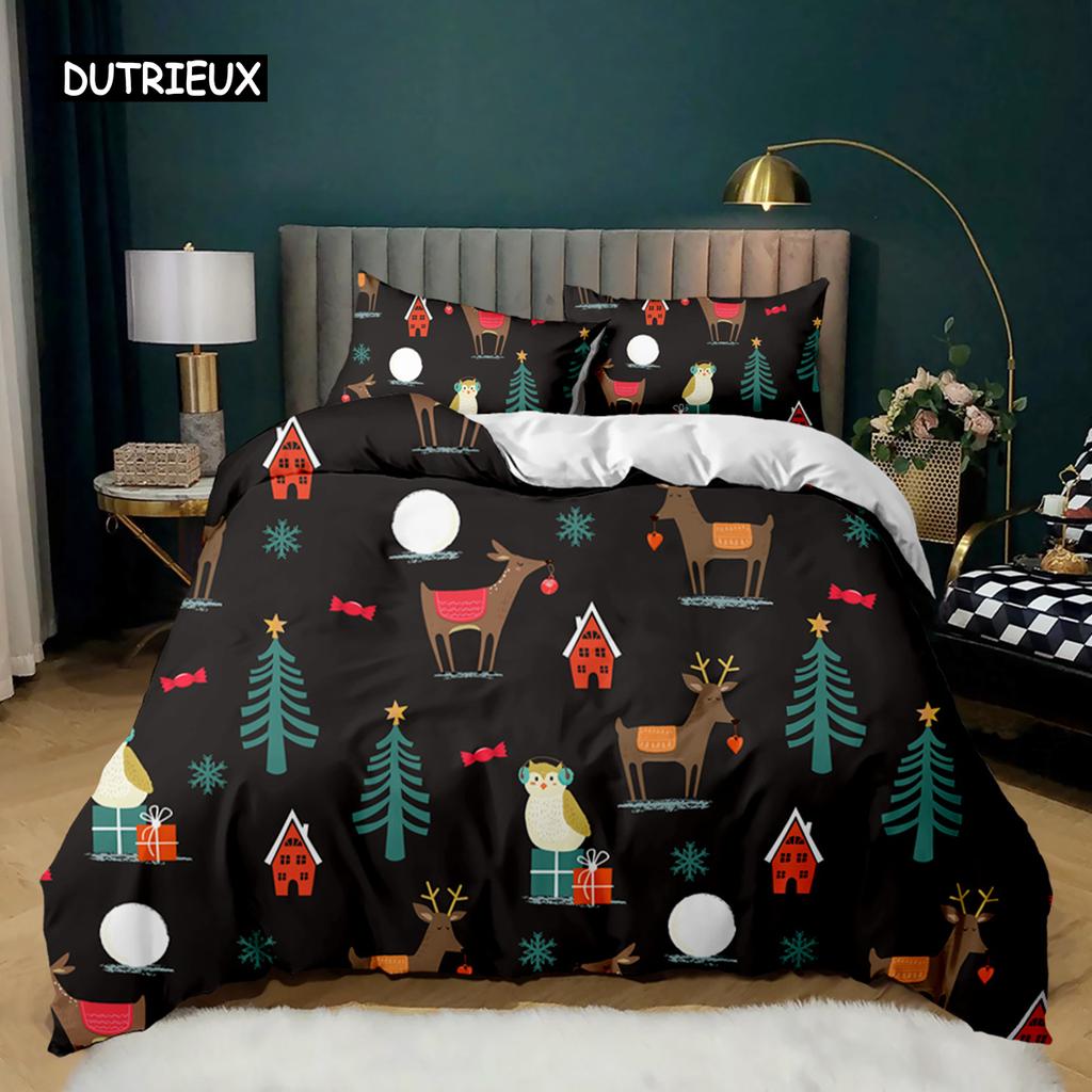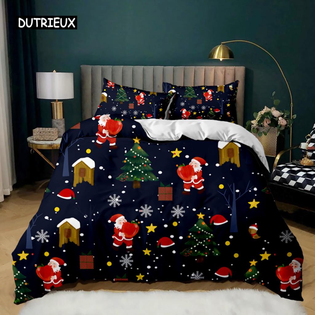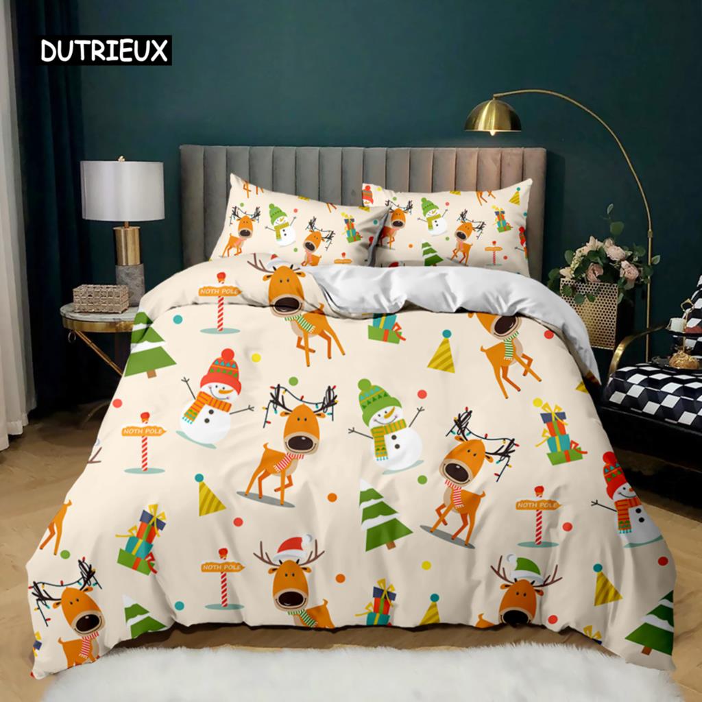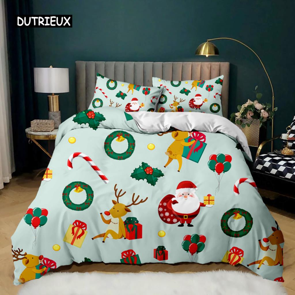 Рождественский комплект постельного белья с принтом Санта-Клауса и оленей Счастливого Рождества Рождественский комплект одеяла из полиэстера Мягкое постельное белье