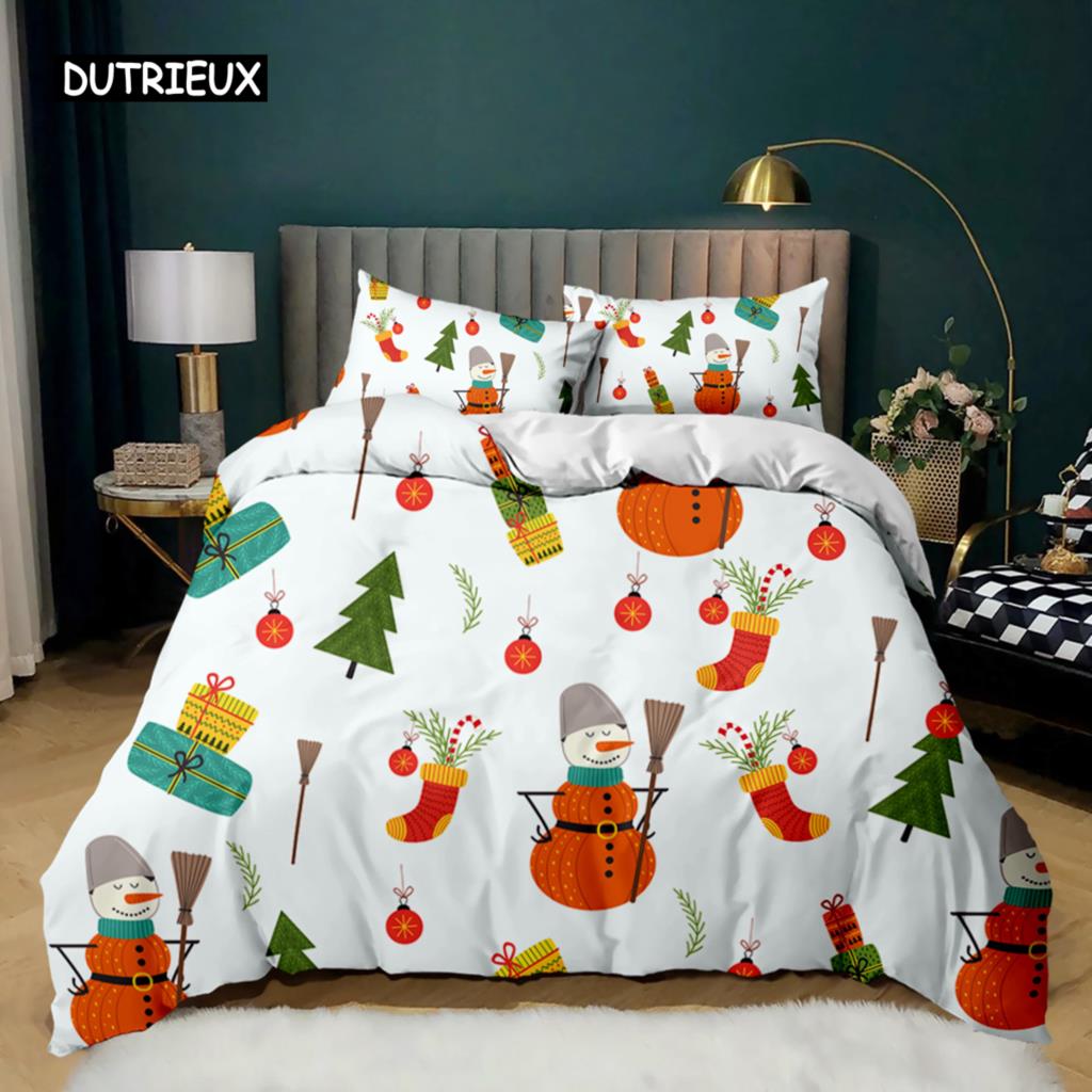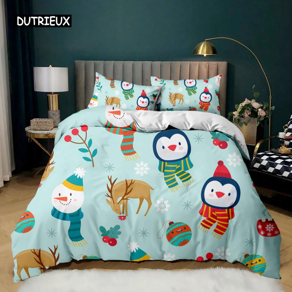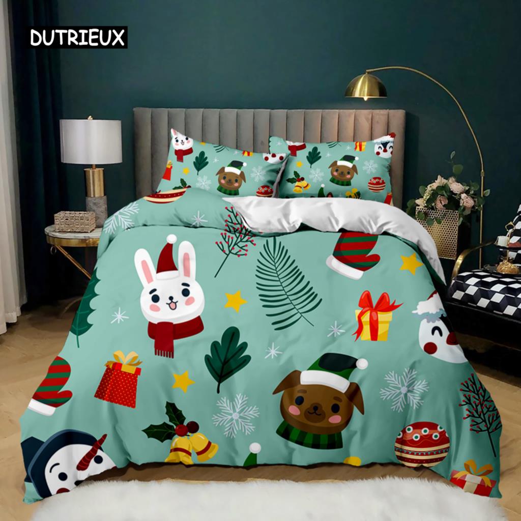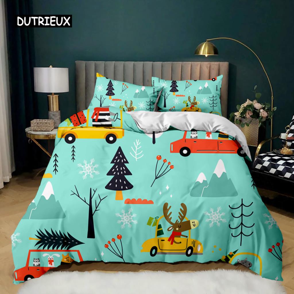Рождественский комплект постельного белья с принтом Санта-Клауса и оленей Счастливого Рождества Рождественский комплект одеяла из полиэстера Мягкое постельное белье