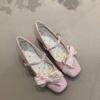 Нежные туфли Мэри Джейн с феерическим ветерком 2025 весна французский вишнево-розовый жемчужный бант квадратный носок неглубокий вырез высокий каблук