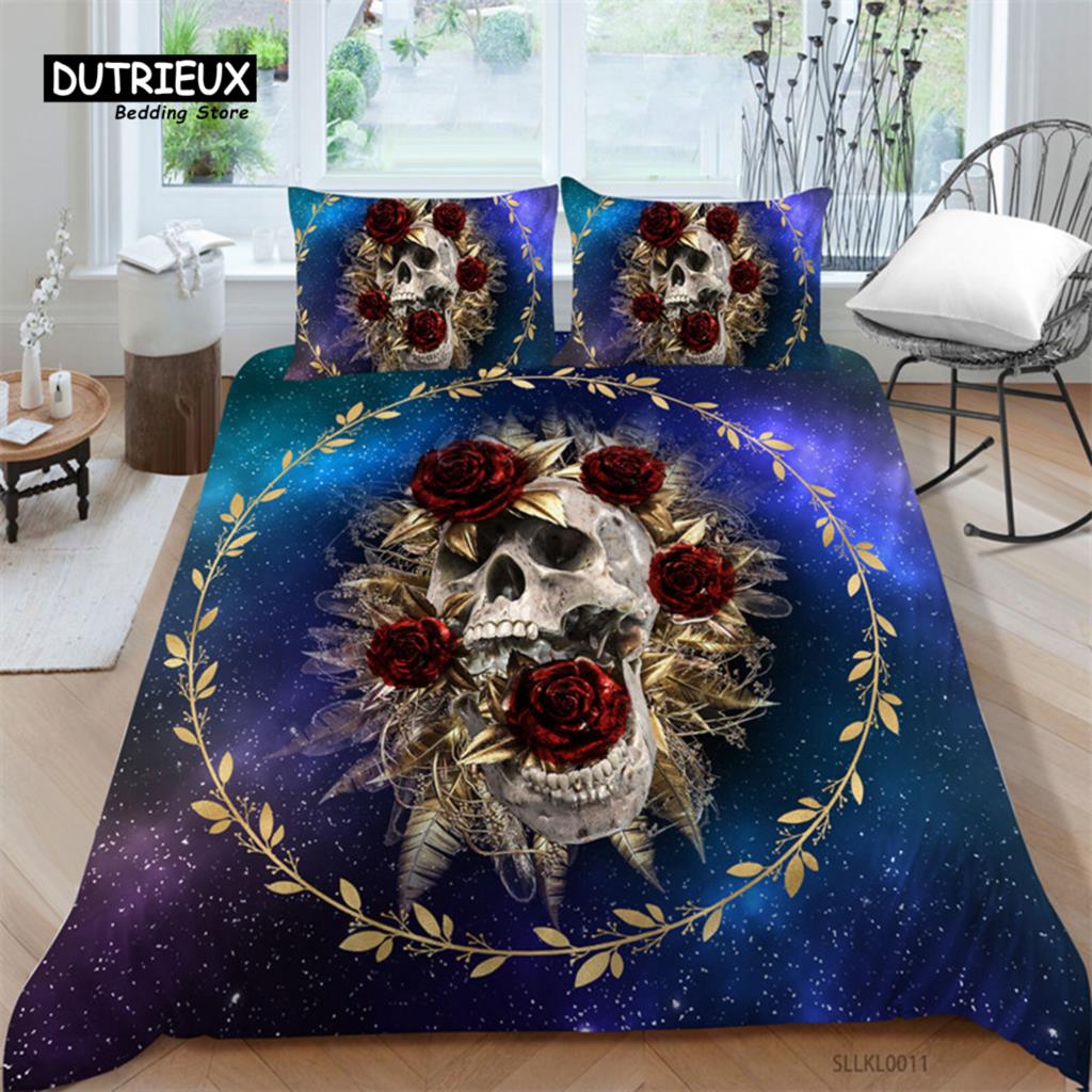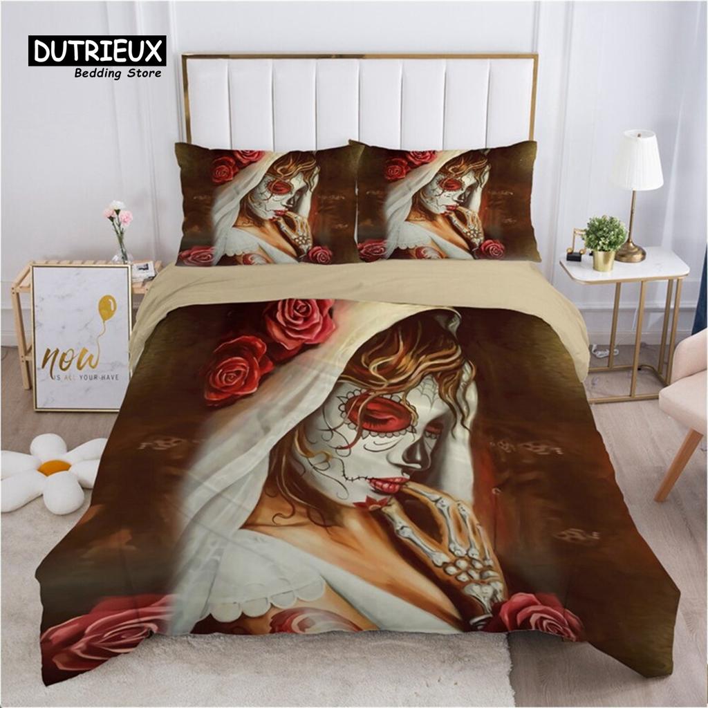 Пододеяльник с изображением сахарного черепа, готический череп, скелет, комплект постельного белья, тема ужасов, одеяло, покрывало, размер «полный король», для подростков, взрослых, декор спальни