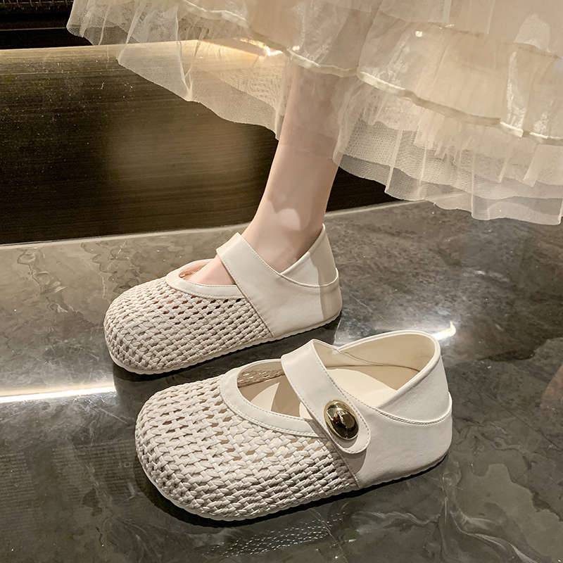 Тканые туфли Мэри Джейн на толстой подошве с внутренней платформой на липучке для детей с юбками 2025 лето новая одинарная обувь