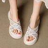 Ретро плетеные ажурные легкие тапочки женские летняя обувь 2025 новый модный универсальный дышащий толстый каблук однослойные шлепанцы