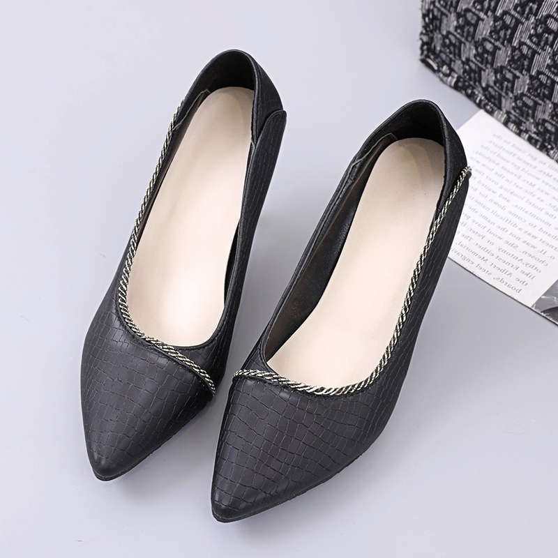 Французские туфли на высоком каблуке женские весна и осень 2025 новая популярная обувь-лодочки на шпильке с острым носком для работы черные профессиональные кожаные туфли