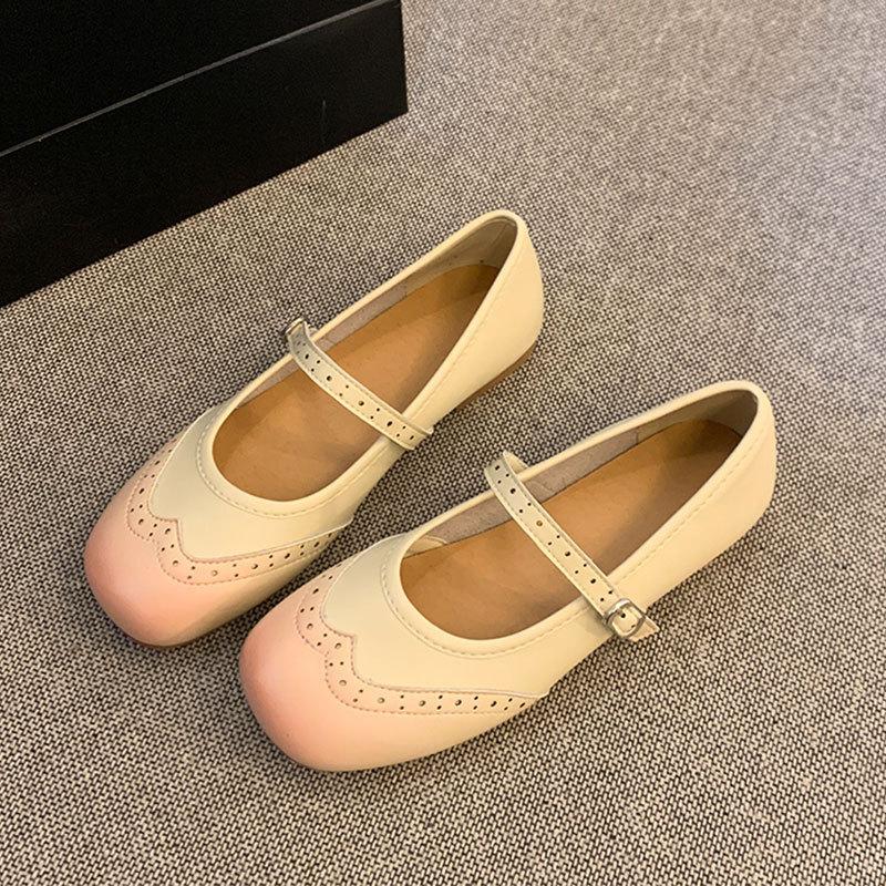 Модные балетки, одинарная обувь, женские весенние резные туфли Мэри Джейн Брок, ретро стиль, плоские французские маленькие кожаные туфли