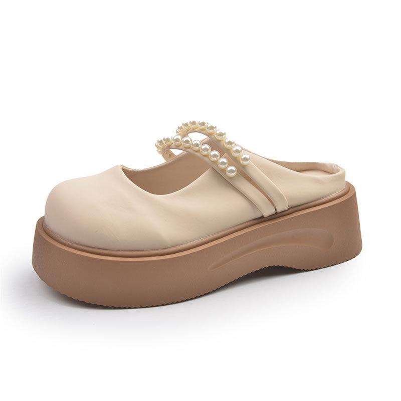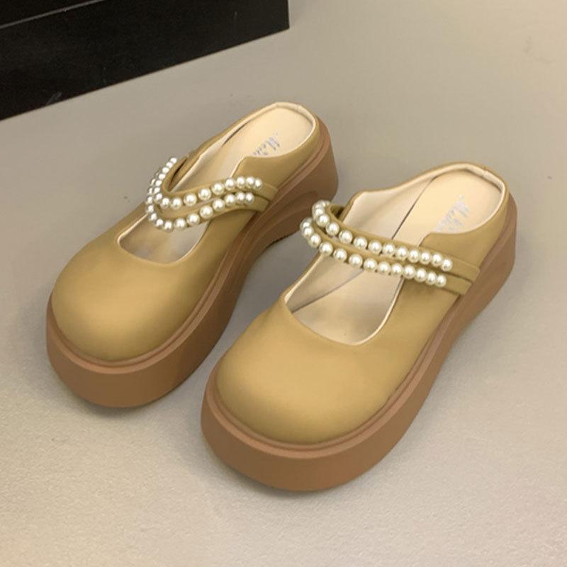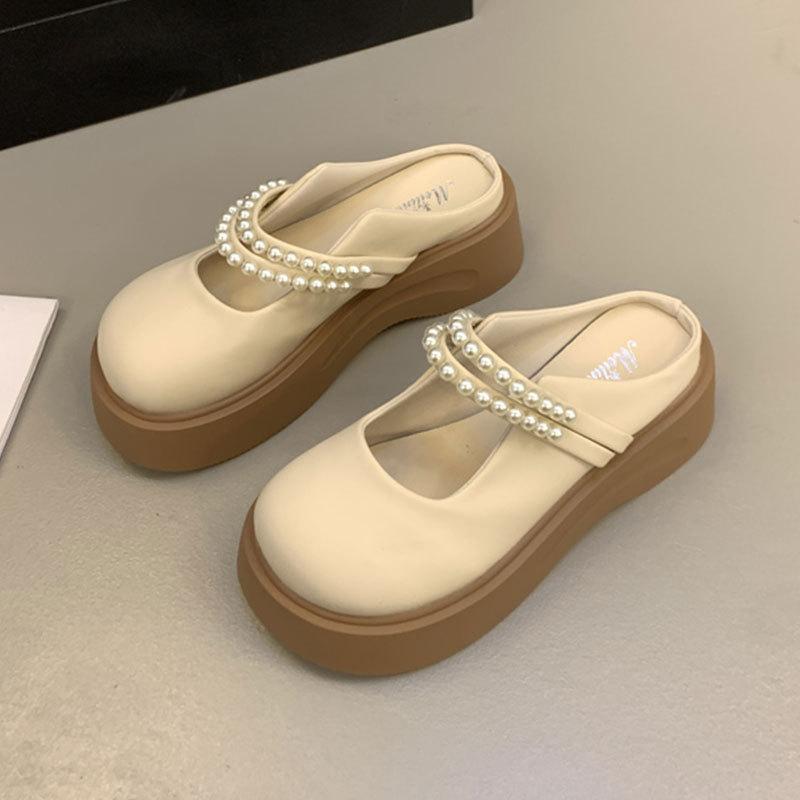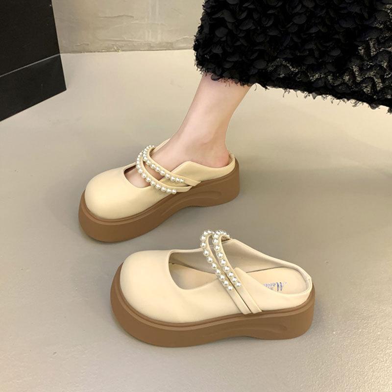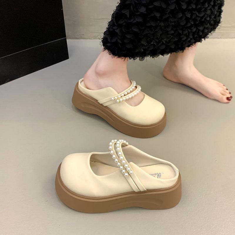 Толстоподошвенные однопедальные жемчужные французские Мэри Джейн с сумкой-головой, полушлепанцы женские весенне-летние для улицы, новые крутые шлепанцы 2025