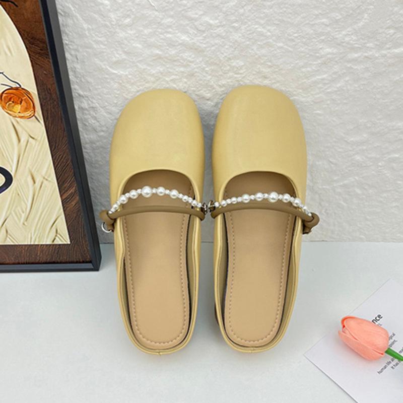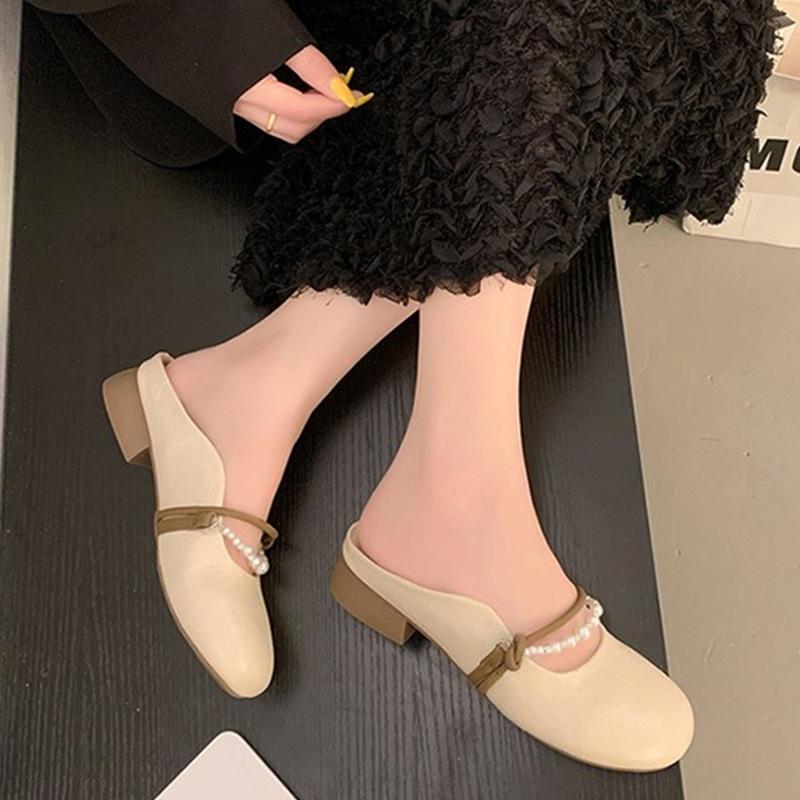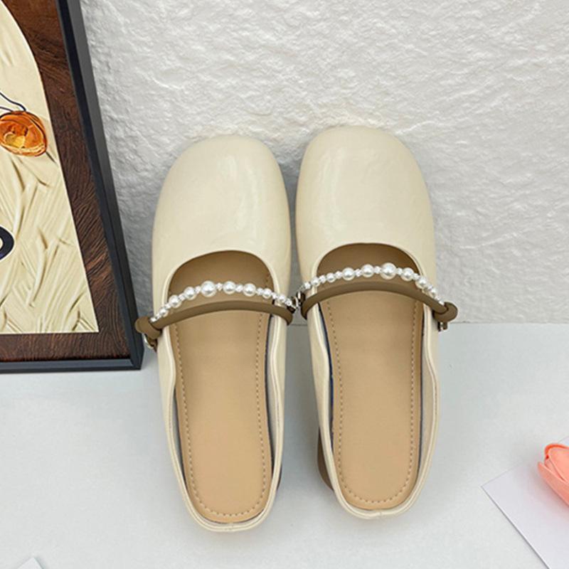 Французская сумка голова полутапочки женские уличные 2025 новая весна плоская подошва жемчуг один педаль Мэри Джейн крутые тапочки