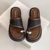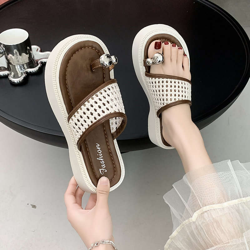 Ретро плетеные шлепанцы-щипки женские 2025 новые летние носить иностранные модные сандалии на толстой подошве с юбками римские туфли