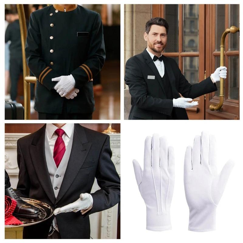 2/4 пары белых перчаток, смокинг, формальные, хлопковые перчатки, мужские, женские, дышащие, с полными пальцами, для гвардейского оркестра, костюм дворецкого