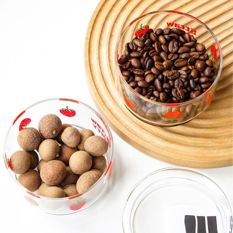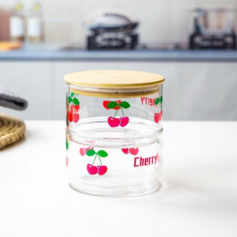 Корейская стеклянная миска для клубники с бамбуковой крышкой, милая вишневая коробка для закусок, емкость для фруктов, свежий контейнер, банки с крышкой для кухонного хранения, банка