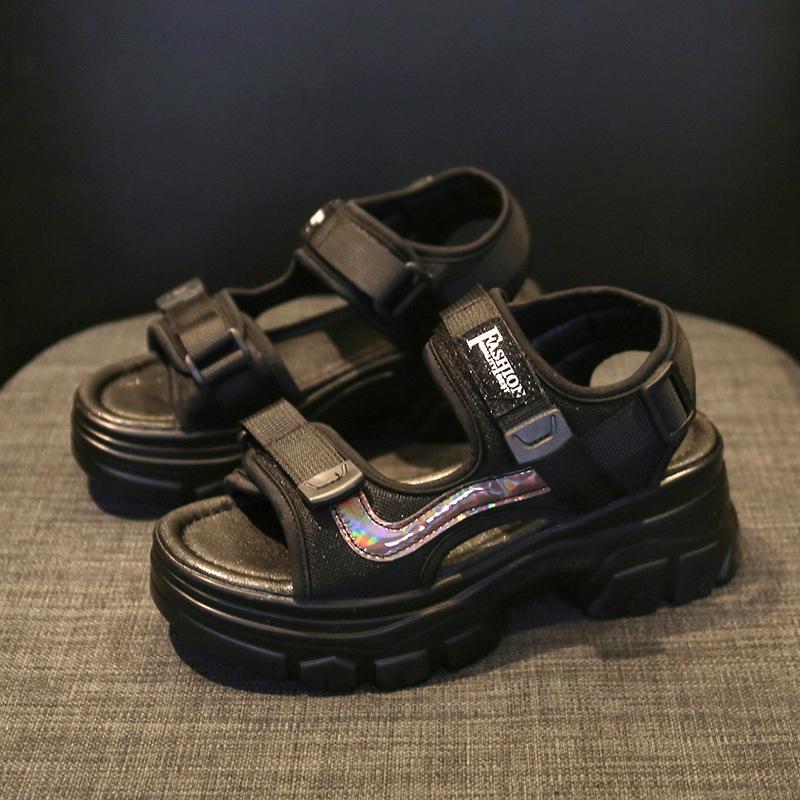 Спортивные сандалии женские 2025 новые летние универсальные на платформе, на танкетке, модные, для улицы, пляжная женская обувь