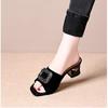 Женские летние шлепанцы на высоком каблуке 2025, нескользящие шлепанцы на мягкой подошве, шлепанцы с квадратным носком и толстым каблуком, босоножки на среднем каблуке с открытым носком