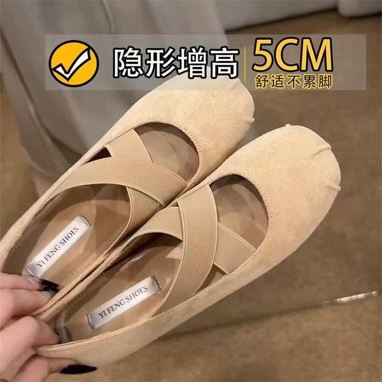 Внутреннее увеличение высоты 5 см, балетки с маленьким перекрестным ремешком, женские, осень 2025, новые, нежные и универсальные туфли Doudou — купить товар онлайн с бесплатной доставкой по всему миру!