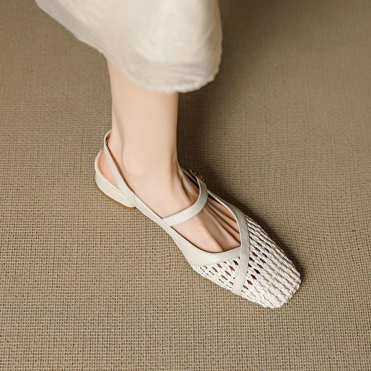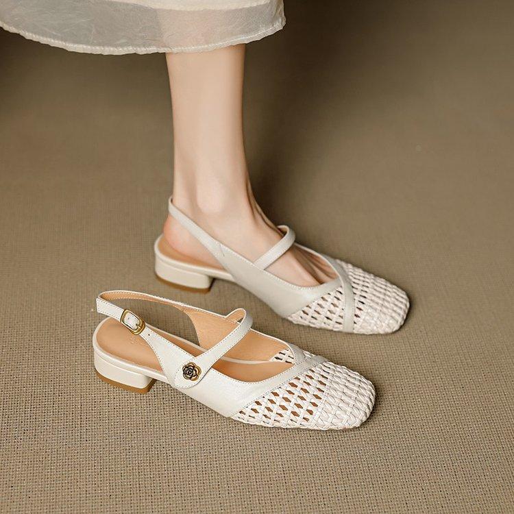 Французские красивые плетеные ажурные сумки, сандалии с открытым носком, женские 2025, новые летние, на низком каблуке, на толстом каблуке, взрывные сандалии Мэри Джейн