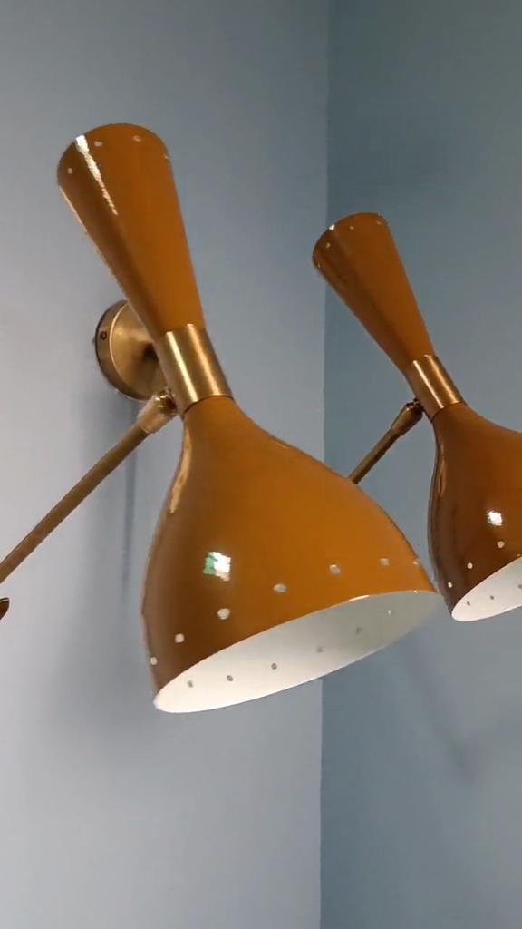 Настенный светильник середины века Современный настенный светильник из латуни в стиле середины века Ретро итальянский осветительный прибор Пара коричневых настенных ламп Ручные бра из латуни