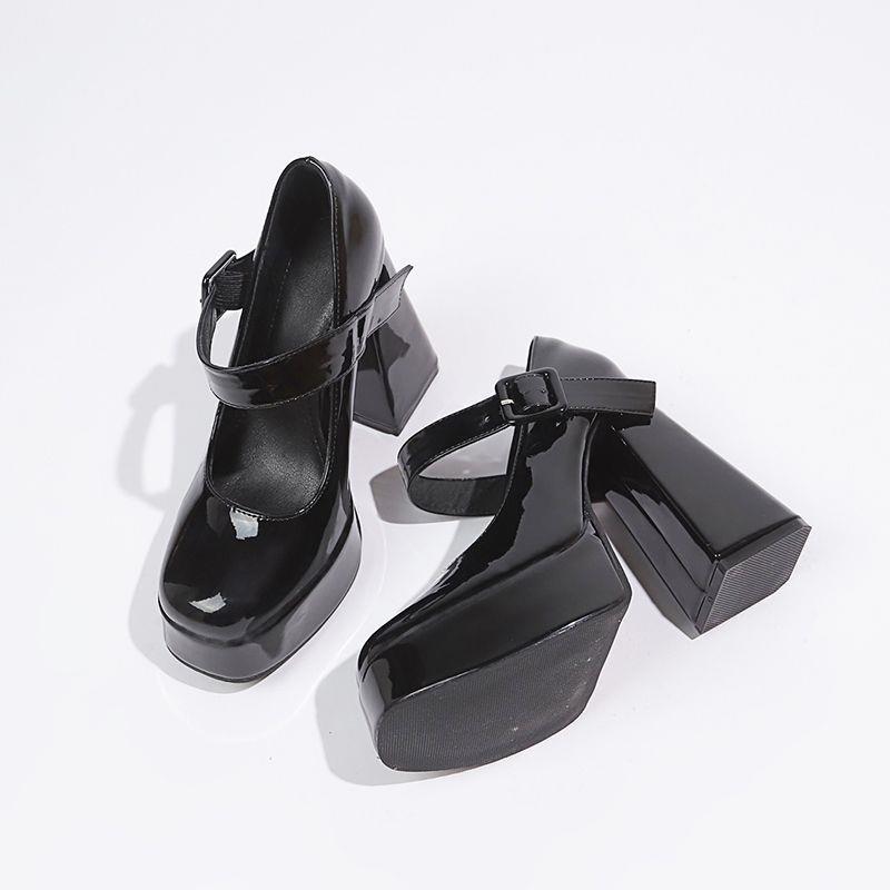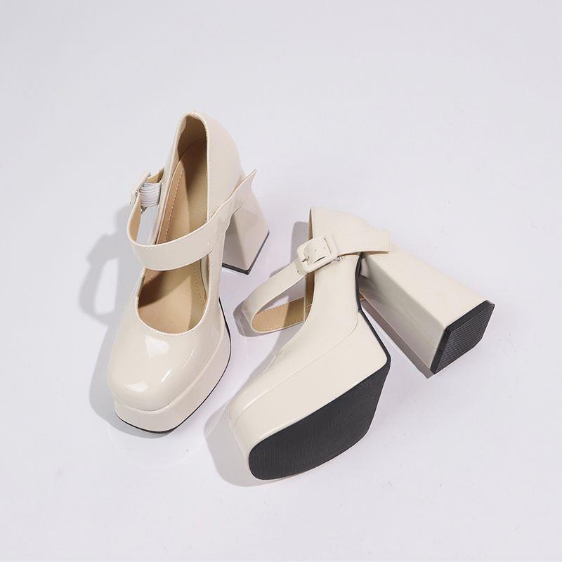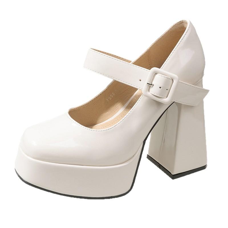 Французские туфли Мэри Джейн на высоком каблуке женские белые 2025 новые водонепроницаемые на платформе на толстой подошве на толстом каблуке с ремешком с пряжкой в виде одной буквы темпераментные одинарные туфли