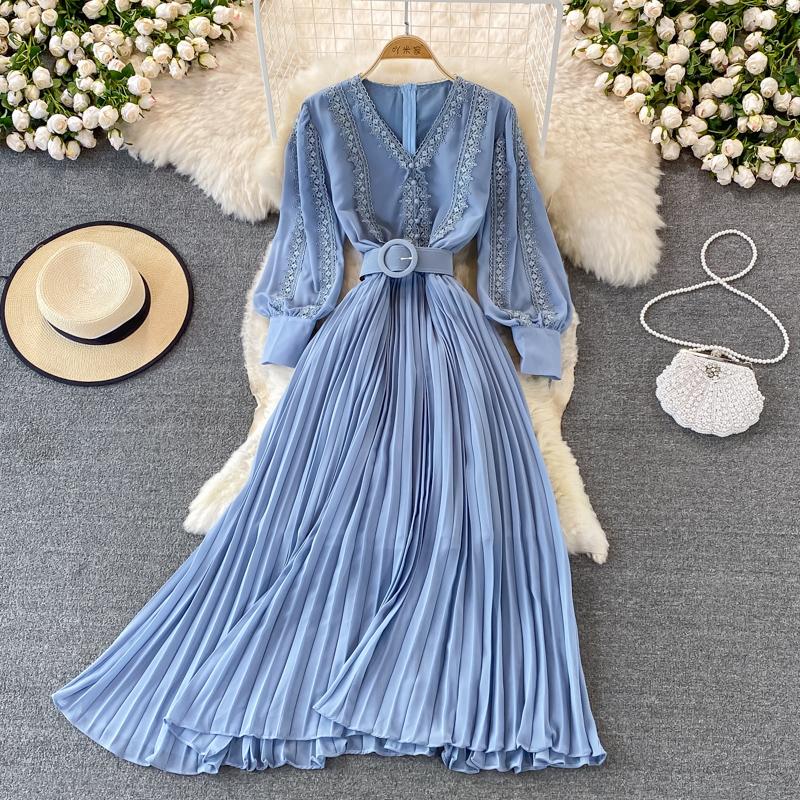 RUGOD плиссированное платье в этническом стиле для отдыха и путешествий с v-образным вырезом и вышивкой на талии, темпераментное большое распашное платье — купить товар онлайн с бесплатной доставкой по всему миру!
