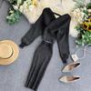 Весенний новый модный костюм в иностранном стиле с v-образным вырезом и рукавами «летучая мышь», вязаный свитер, женская юбка с высокой талией и запахом, комплект из двух предметов — купить товар онлайн с бесплатной доставкой по всему миру!