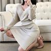 Весенний новый модный костюм в иностранном стиле с v-образным вырезом и рукавами «летучая мышь», вязаный свитер, женская юбка с высокой талией и запахом, комплект из двух предметов