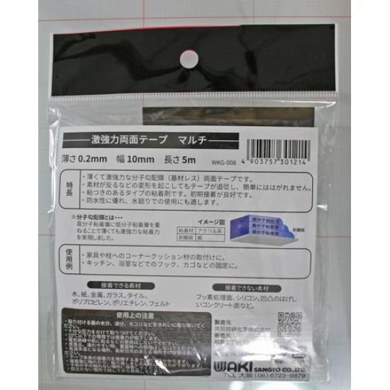 Waki Sangyo Суперпрочный Толстый x 10 мм Широкий x 5 м для и Двусторонний Скотч, Многоцелевой, 0,2 мм Длинный, Фиксация, Монтаж, Адгезия, WKG-008