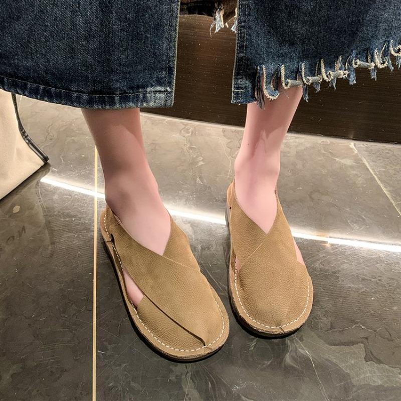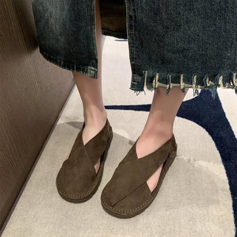 Летняя обувь Женская 2025 Новые Повседневные Балетки С Закрытым Носком Сандалии Ретро Слипоны Летние Лоферы Нескользящие Удобные Сандалии Обувь