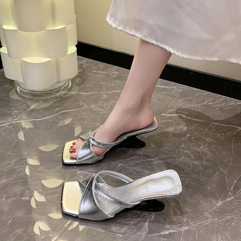 Летние женские шлепанцы с открытым носком 2025 года, модные уличные нарядные шлепанцы для женщин, новинка, квадратный носок, бестселлер, однотонные, на высоком каблуке, zapatos