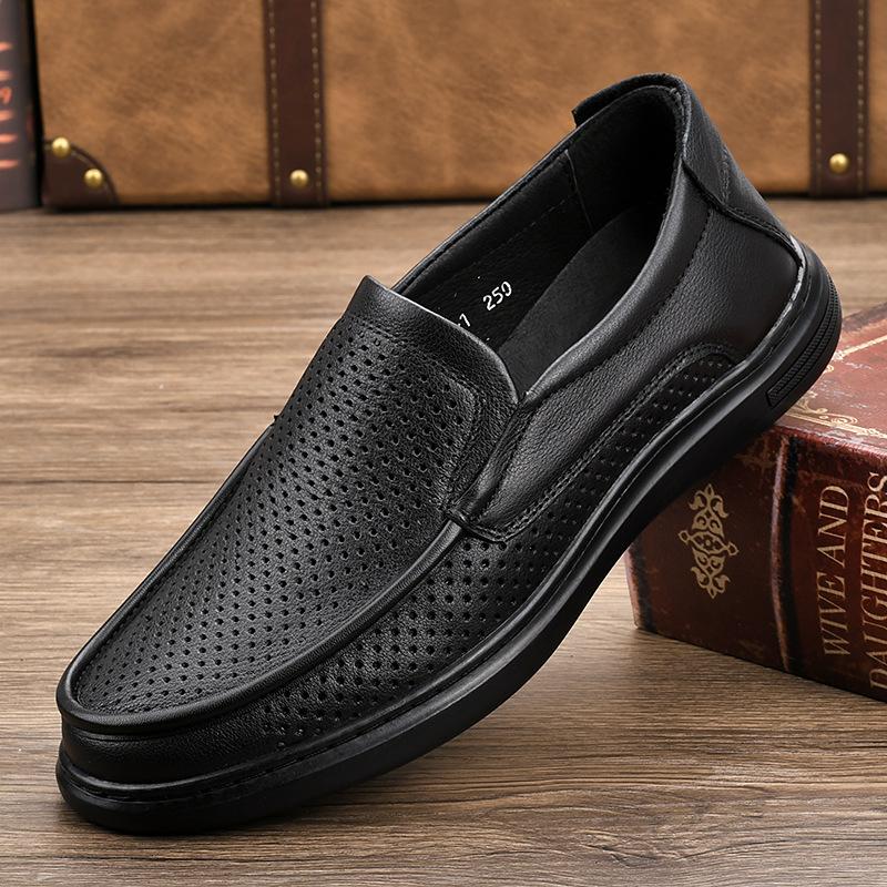 Слой Кожа Мужская обувь Осень Износостойкая и Противоскользящая Обувь для повара Повседневная Кожаная обувь Мужские Ноги Широкие Обувь Отца Обувь Отца Весенняя обувь