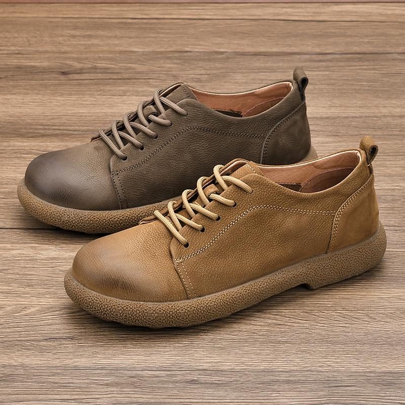 Верхний слой коровья кожа Толстая подошва Мужская обувь Новая Весна Ретро Плоская подошва Повседневная На шнуровке Универсальная Противоскользящая Дышащая Мягкая подошва Летняя версия