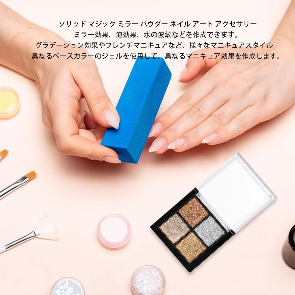 Mirror Powder 4-Color Palette Nail Powder Solid Mirror Nail Powder Gold Silver Aurora Powder Gel Nail Powder Resin Nail Art Workshop Nail Parts with