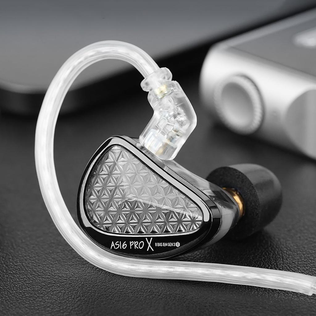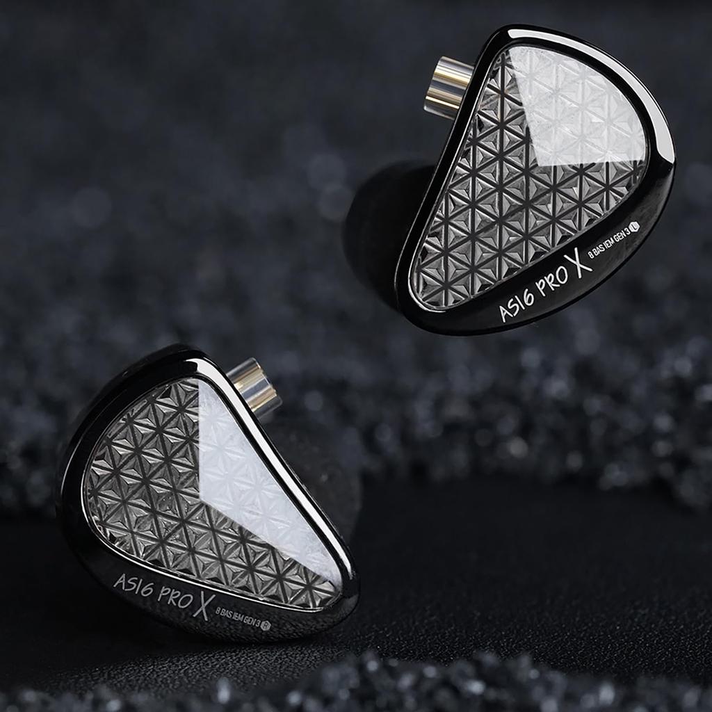 16 арматурных драйверов охватывают весь звуковой диапазон для аудиопира: AS16 ProX имеет роскошную конфигурацию из 16 арматурных драйверов с уравновешенным якорем. Каждый драйвер был тщательно отобран и протестирован для обеспечения оптимальной производительности.. Каждый аспект звука воспроизводится точно, от глубоких, насыщенных басов до чистых, детализированных высоких частот.