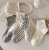 Женские полосатые носки с вышивкой маленькой собачки, всесезонные универсальные носки до середины икры в школьном стиле