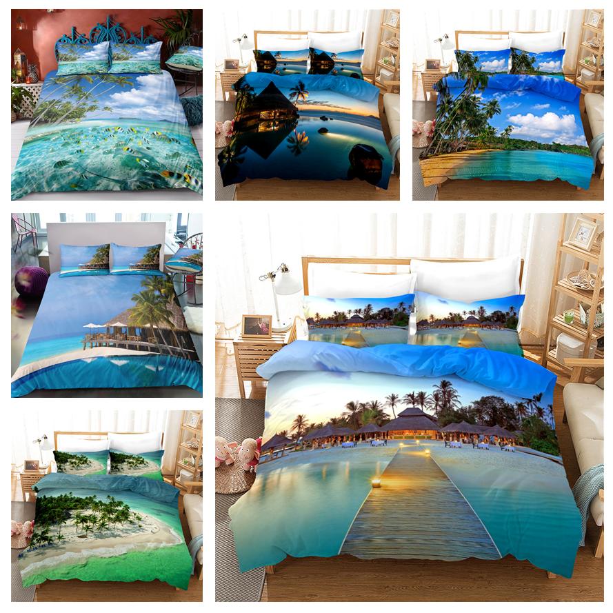 3D Sea View Постельное белье Летний береговой пух Пододеяльник и наволочка 2/3 шт. King Queen Кровать Домашний текстиль Подарок