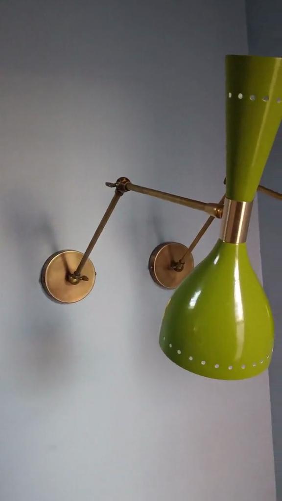 Brass Diabolo Wall Sconce Pair: Olive Green Mid Century Italian Lighting — купить товар онлайн с бесплатной доставкой по всему миру!