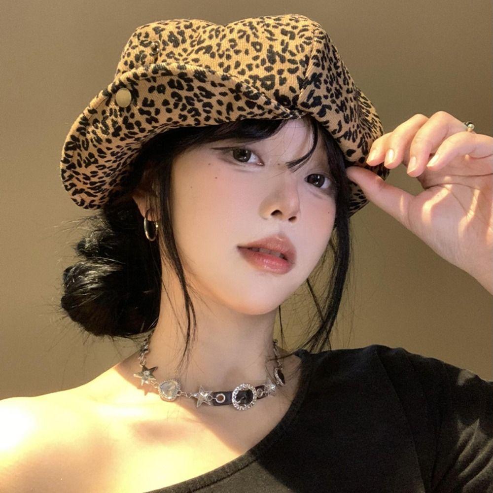 Леопардовый принт Художественная шляпа Y2K Восьмиугольная кепка Повседневный леопардовый берет Путешествия — купить товар онлайн с бесплатной доставкой до всему миру!