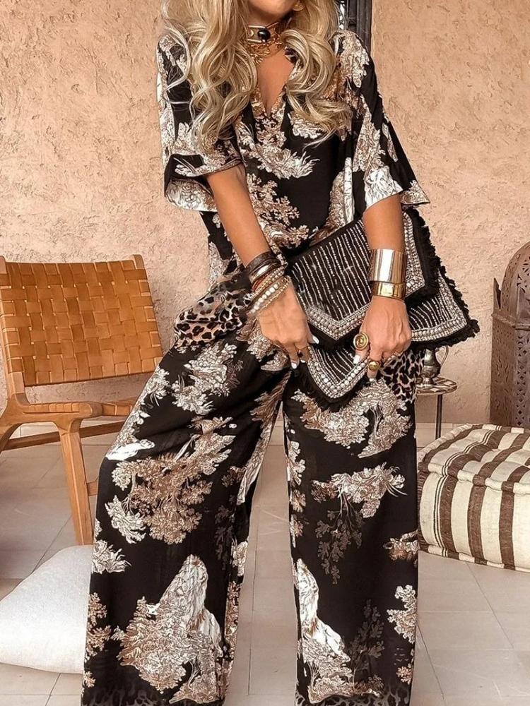 Комплект-двойка в тон с художественным черно-белым цветочным принтом