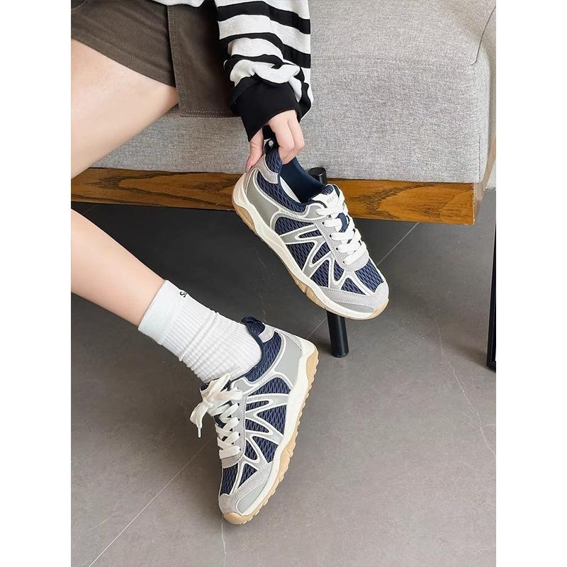 Ретро контрастная цветная вставка на плоской подошве немецкие тренировочные туфли женские 2025 новые сетчатые дышащие удобные универсальные повседневные кроссовки Форрест Гамп