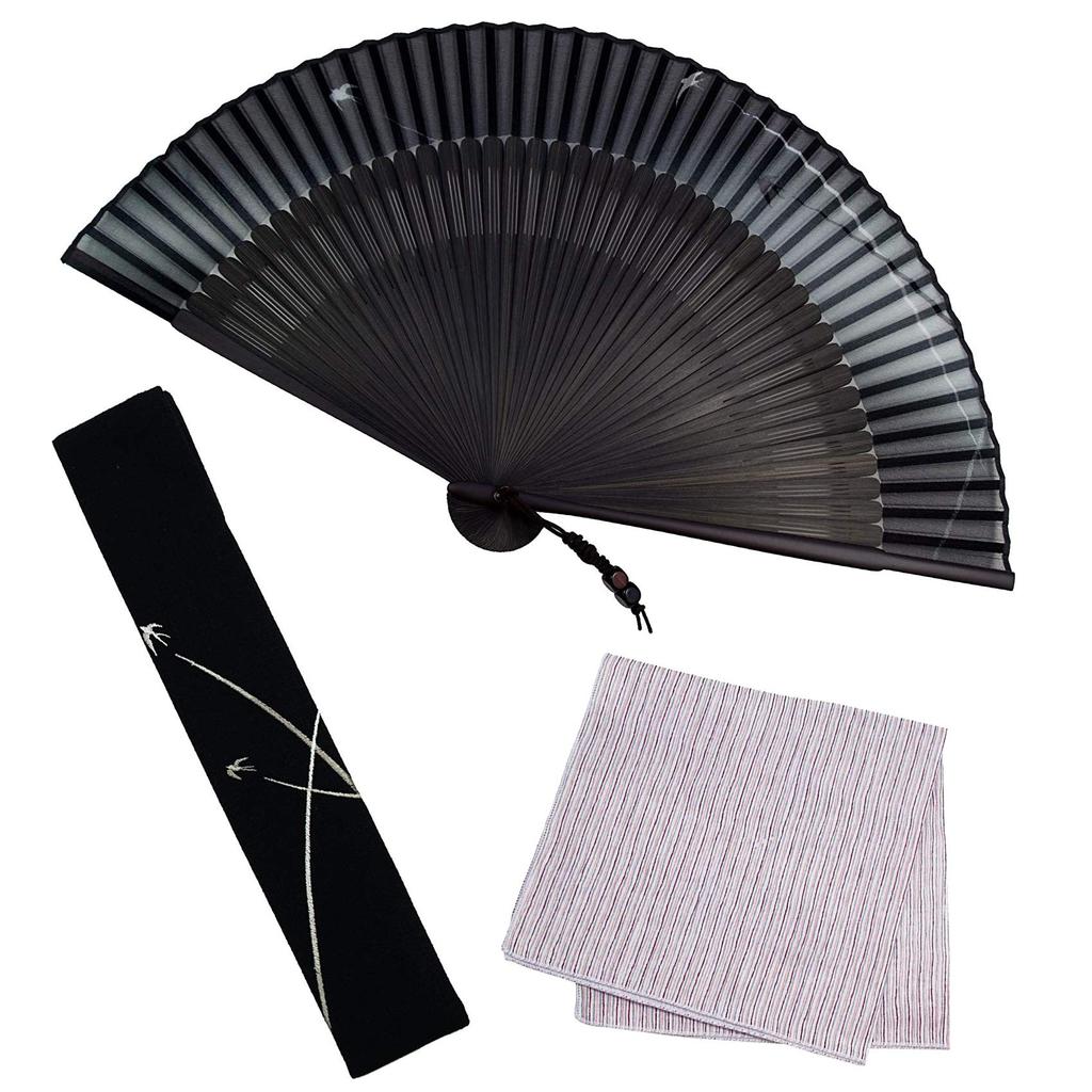 [Osaka Choseido] Мужской стильный складной веер, деловой стиль, со складным чехлом и платком, Сэйга (Ласточка) дизайн
