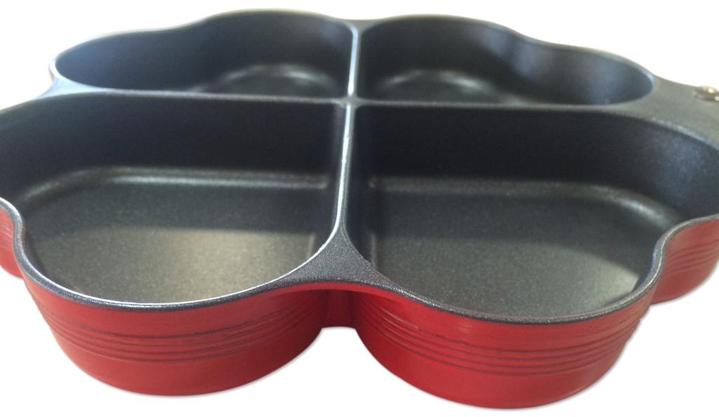 Sugiyama Metal Сковорода с четырьмя лепестками "Приносит счастье", совместимая с индукционными плитами, красная, KS-2812