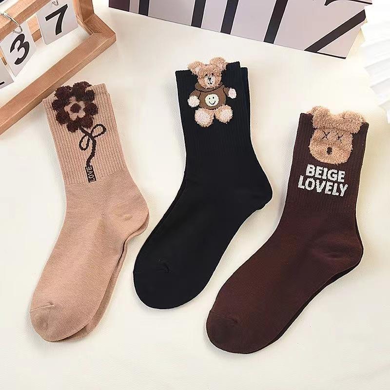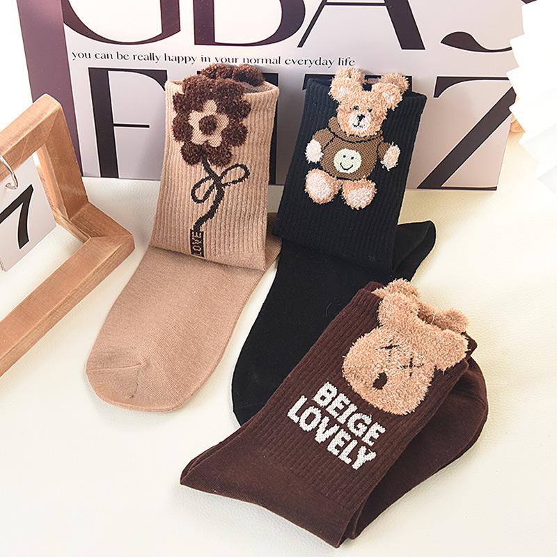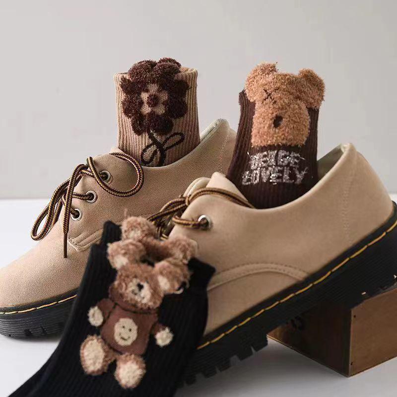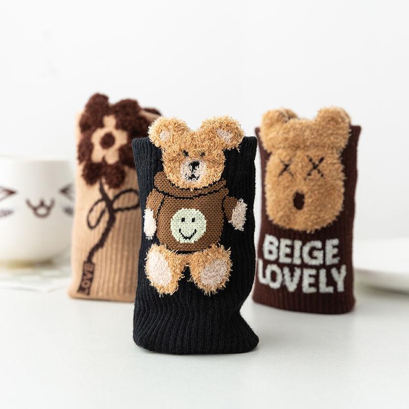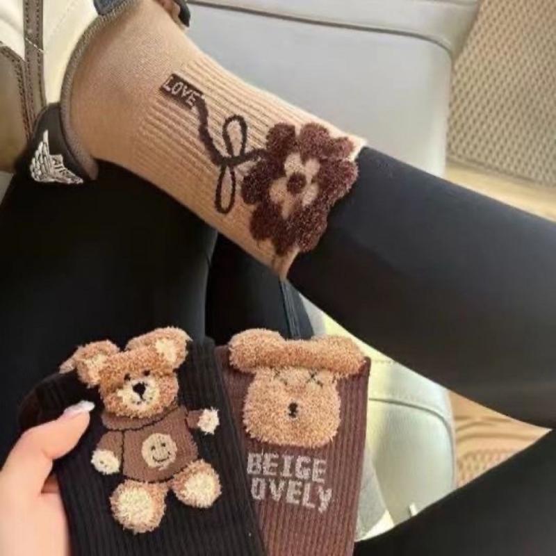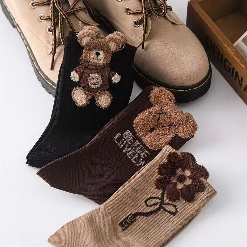 5 пар женских носков с мишками до середины икры, плюшевые носки, милые, модные, осенне-зимние носки