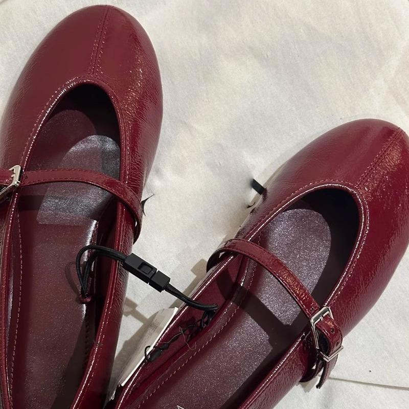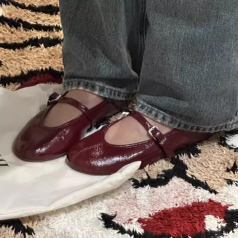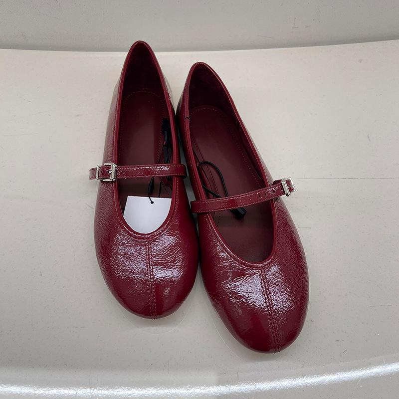Версия из овчины~ женские кожаные туфли Мэри Джейн с ремешком на одной пряжке и мелким вырезом, одинарные туфли на плоской подошве, универсальные маленькие красные туфли для работы sh